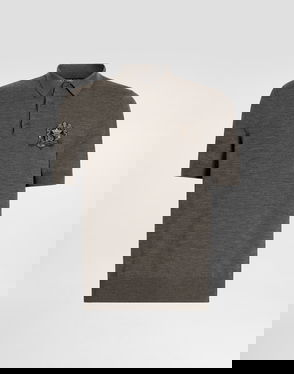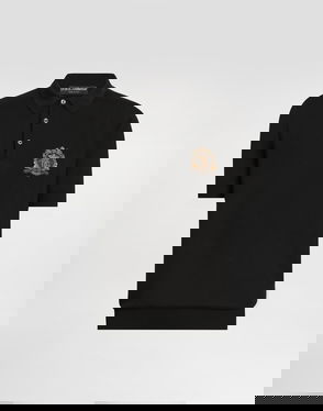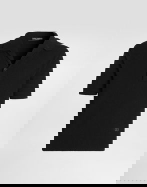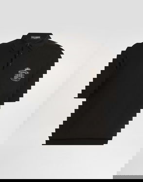 Smooth knit polo shirt: Blue Short sleeves.