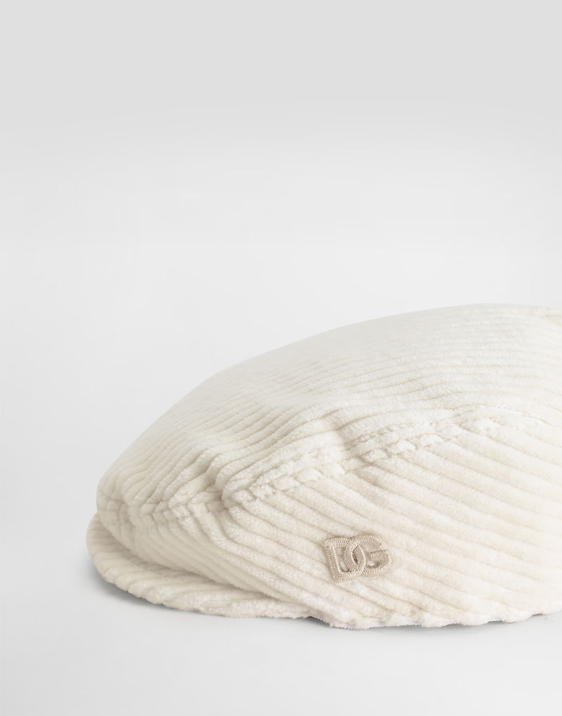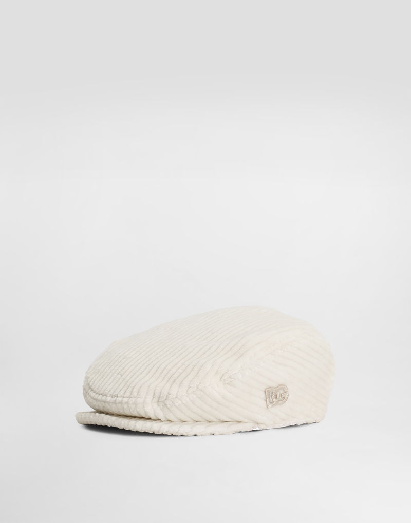 Stretch corduroy flat cap with DG embroidery.
