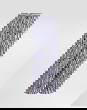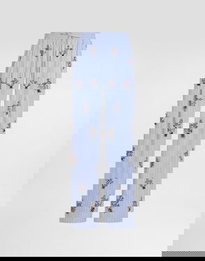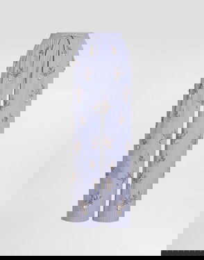 Striped poplin trousers: Multi-colored Low waist Front pleats at the waist French pockets Patch pocket on the back Center-front mock fastening Drawstring Leg opening 32 cm on size 40 IT The model is 175 cm tall and wears size 40 IT Made in Italy