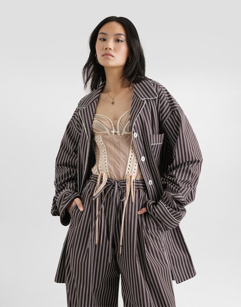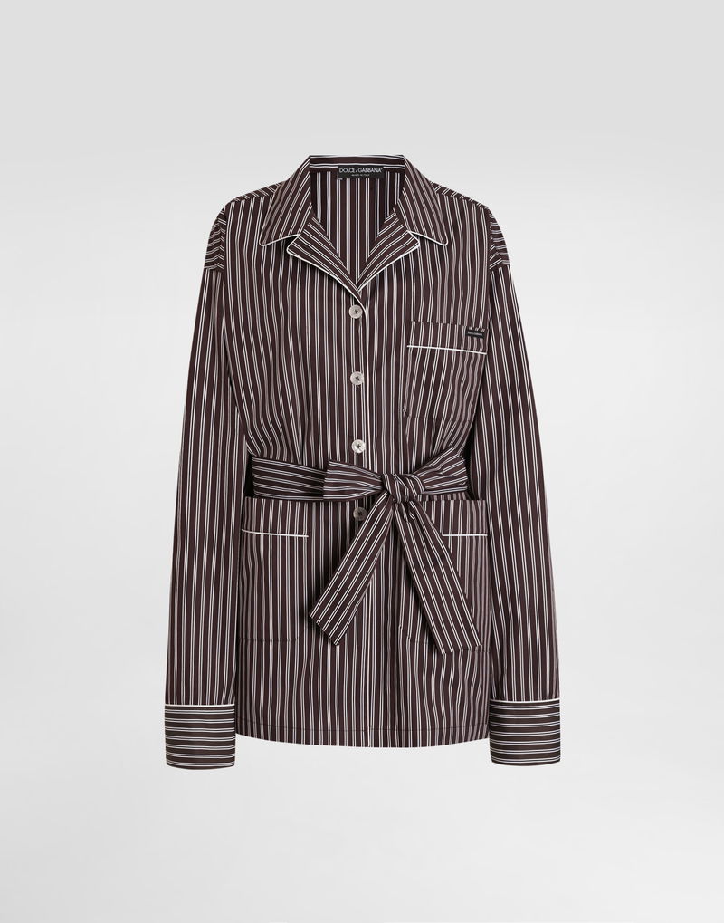 Striped poplin shirt: Multi-colored Vanity shape Front pockets and breast pocket Side slits Waist belt with belt loops The model is 175 cm tall and wears size 40 IT Made in Italy Relaxed fit. Consider taking a size smaller if you prefer a tighter fit.