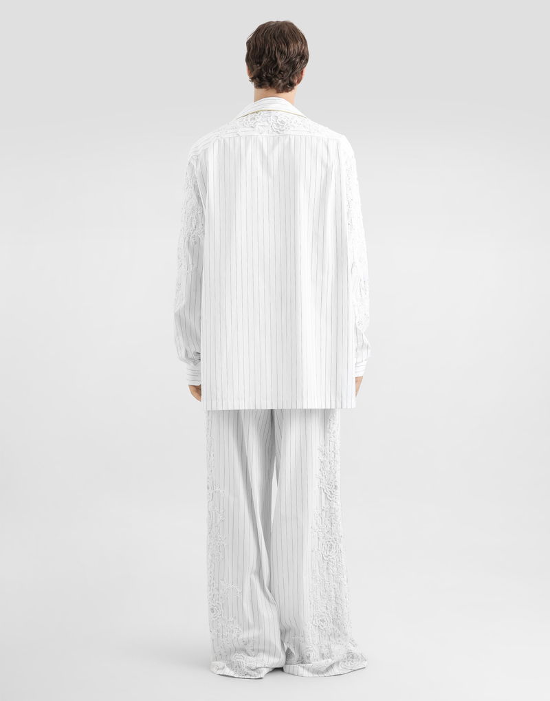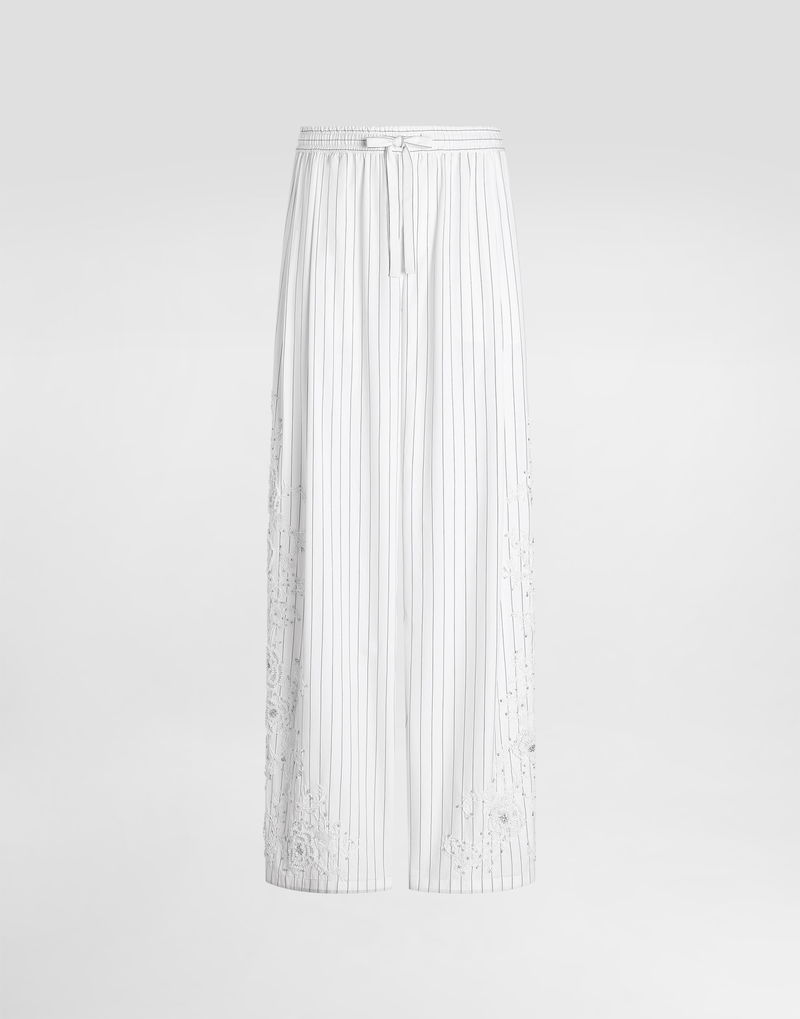 Vanity trousers with embroidery: Multi-colored Elastic waistband Faux lacing French pockets Back pocket with trim Front pleats Piping on sides and pocket The model is 185 cm tall and wears a size 48 IT Made in Italy