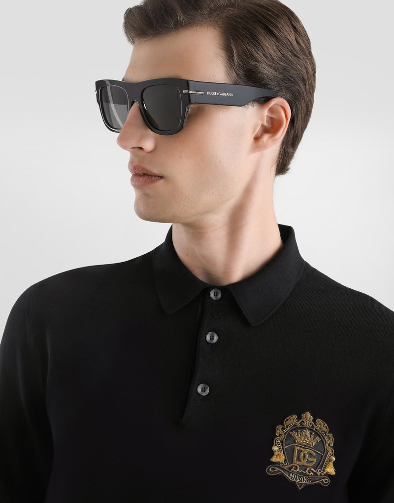 Virgin wool polo shirt: Black Polo-shirt collar Short sleeves The model is 185 cm tall and wears a size 48 IT Made in Italy