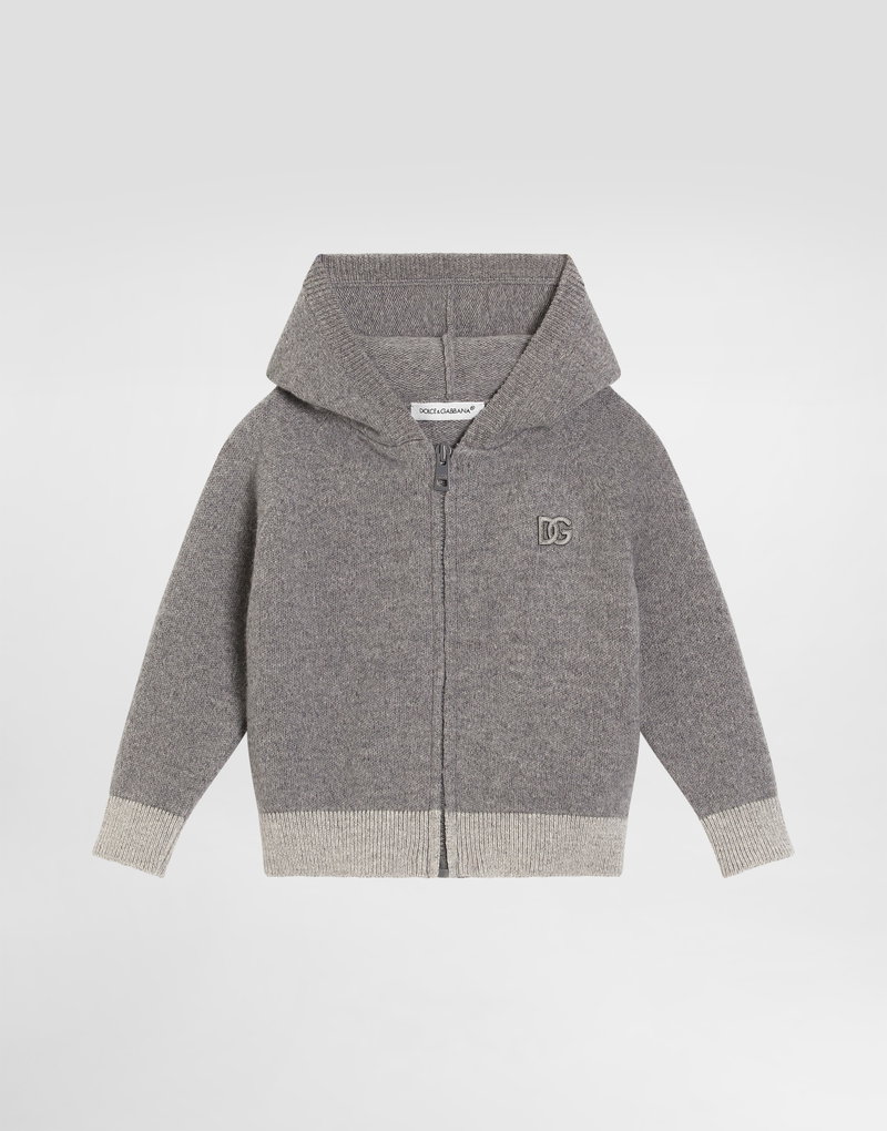 Wool and cashmere hooded cardigan: Grey Made in Italy