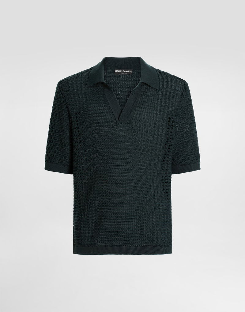 Wool polo shirt: Green Oversized fit Polo-shirt collar Short sleeves The model is 185 cm tall and wears a size 48 IT Made in Italy