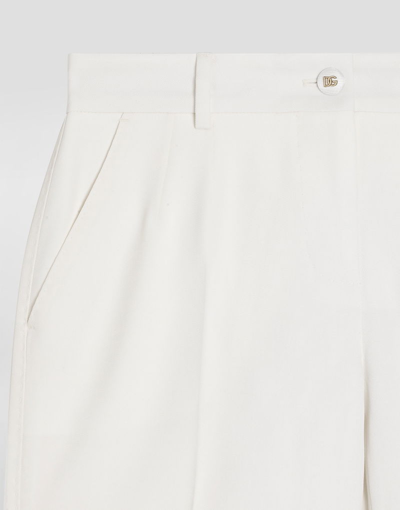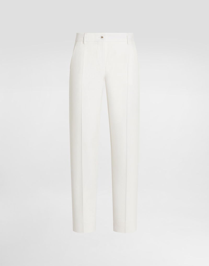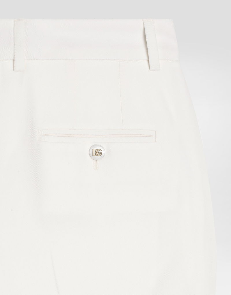 Wool trousers: White Kate waist Cigarette line French pockets Two waist pleats at the front and double darts on the back Welt pocket with buttonhole and button Inseam length 74 cm on size 40 IT The model is 175 cm tall and wears size 40 IT Made in Italy