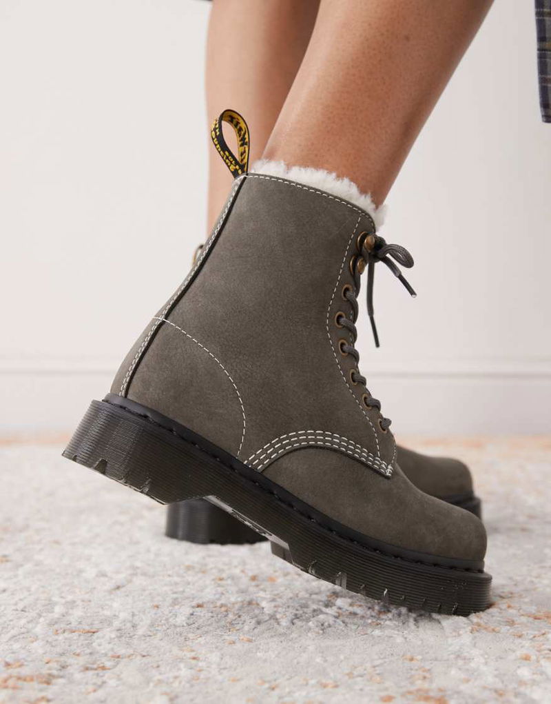 Dr Martens 1460 Pascal Bex Boot With Shearling Lining In Grey