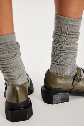 Pin-buckle fastening Square toe Signature Dr Martens branding Chunky sole Mid block heel.
