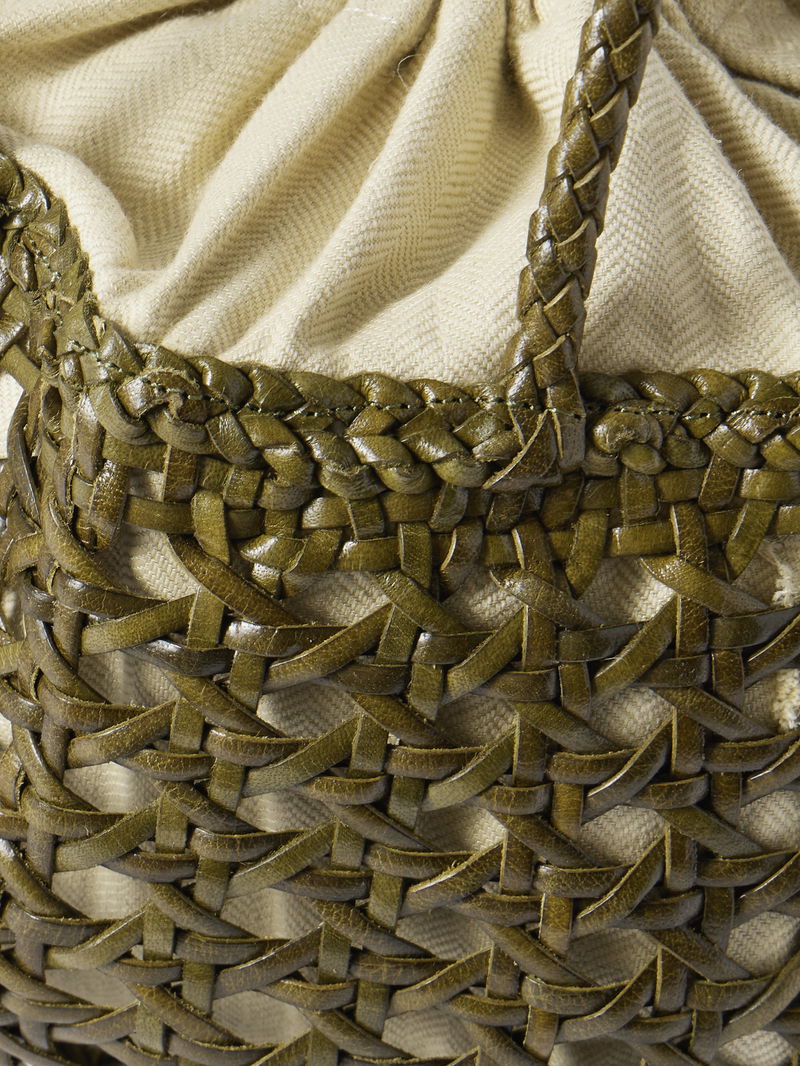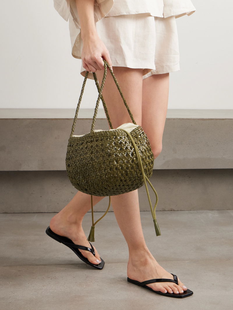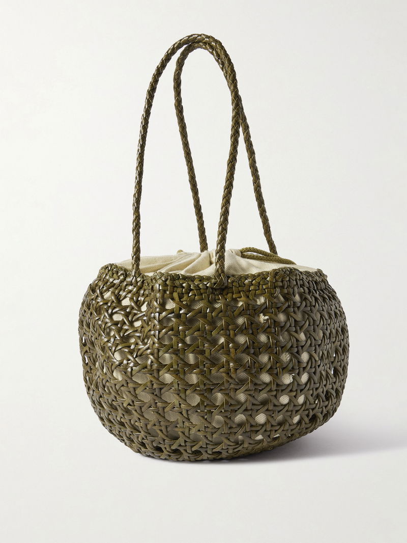Crafted from supple leather using a cannage weaving technique, Dragon Diffusion's 'Juventus' bag is defined by a rounded bucket shape. It's fitted with a cotton drawstring lining to keep essentials secure – think your phone, keys and cardholder – and features a signature antiqued St. Christopher charm as a nod to the patron saint of travelers.