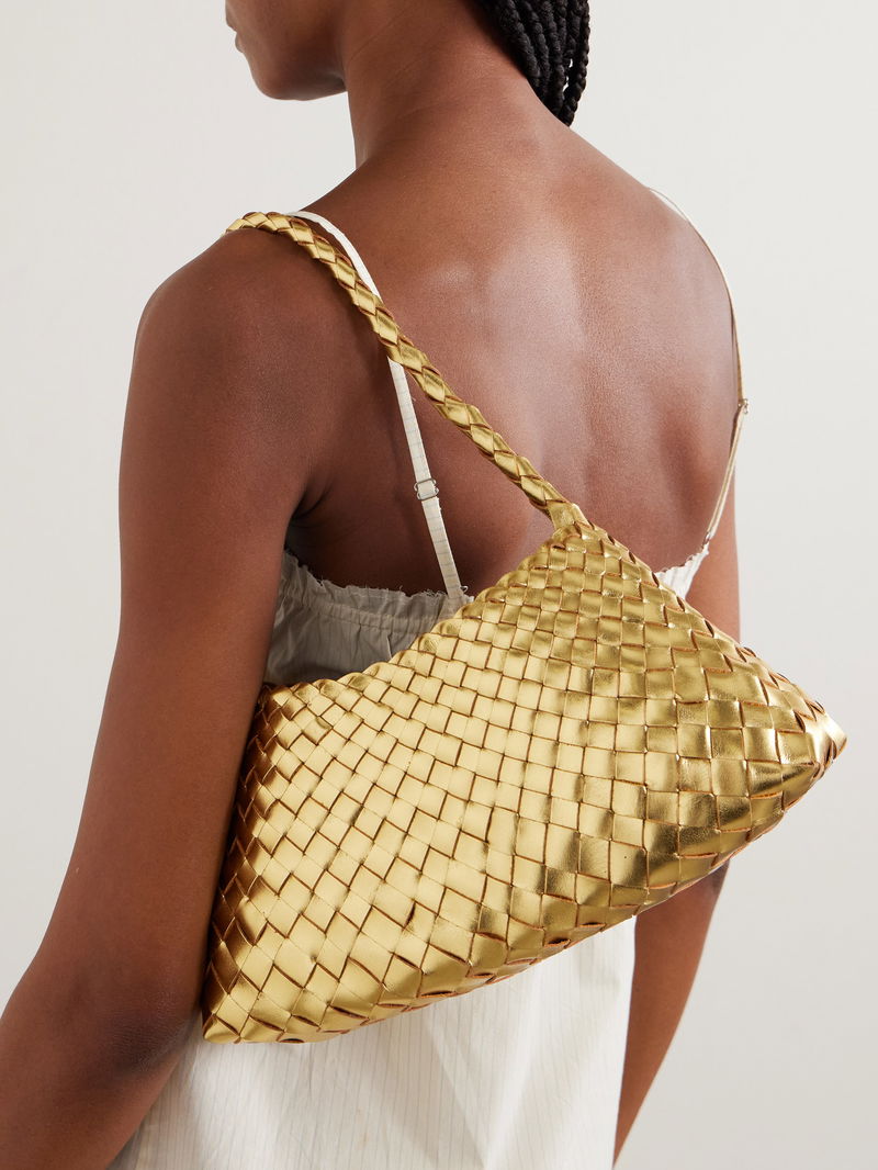 Woven from strips of leather using traditional basket-weaving techniques, this 'Rosanna' tote has a slouchy, tapered shape with just enough room inside for your phone, cardholder and sunglasses. The long shoulder strap will sling comfortably over your arm.
