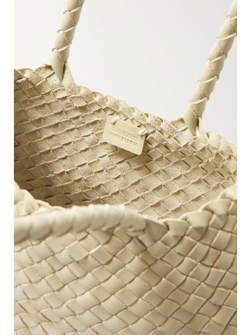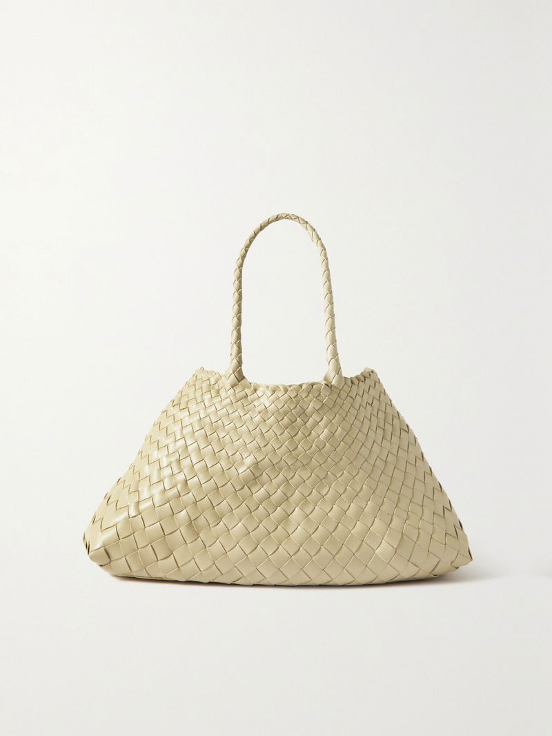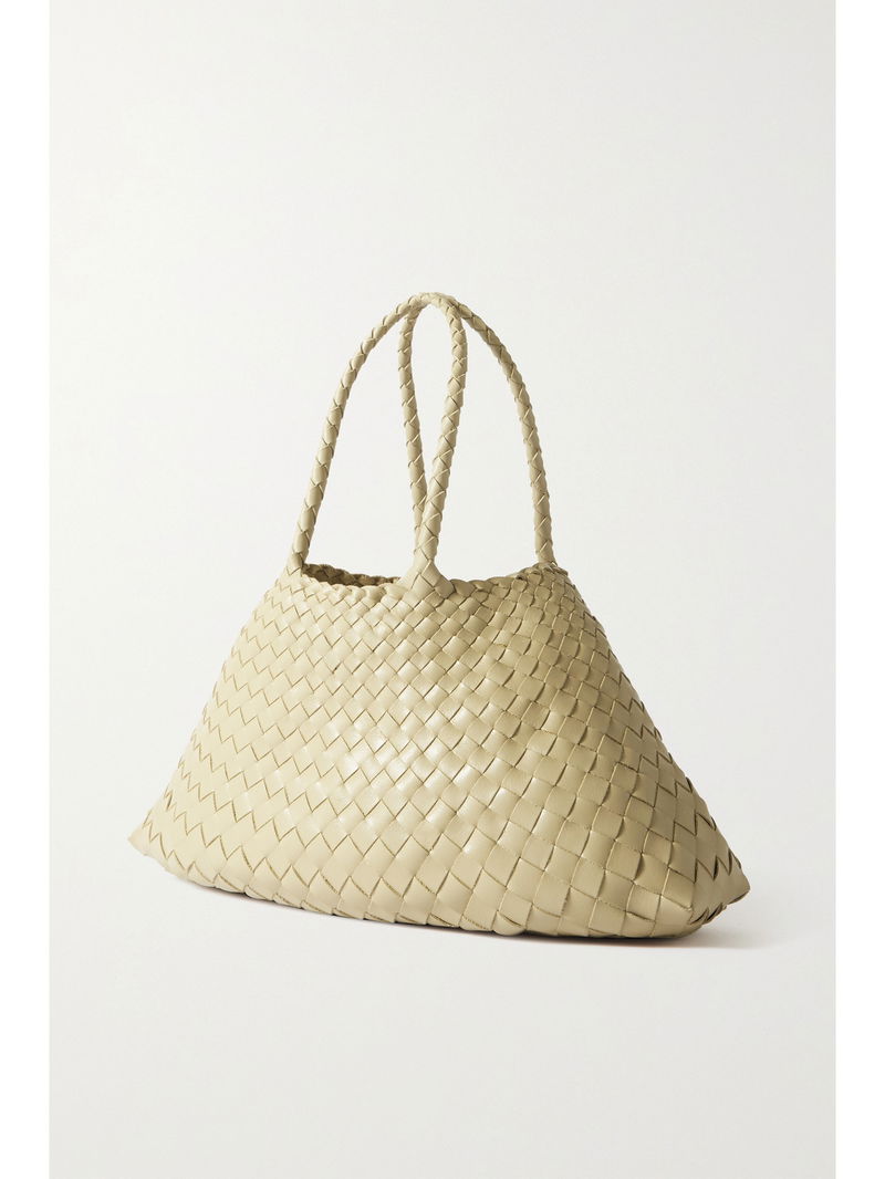 Dragon Diffusion's bags are inspired by traditional woven baskets used for hundreds of years around the world. This 'Santa Croce Big' tote is made from vegetable-dyed strips of leather that get thinner towards the top to achieve the elegantly curved trapeze shape.