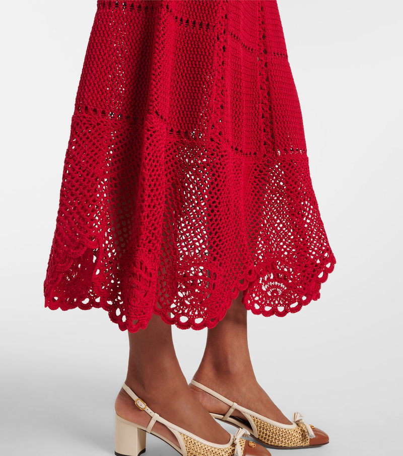 Incorporate modern romance into your edit with Erdem's whimsical and delicate designs. This midi dress is crafted from cotton crochet and features a flared silhouette with scalloped trims.