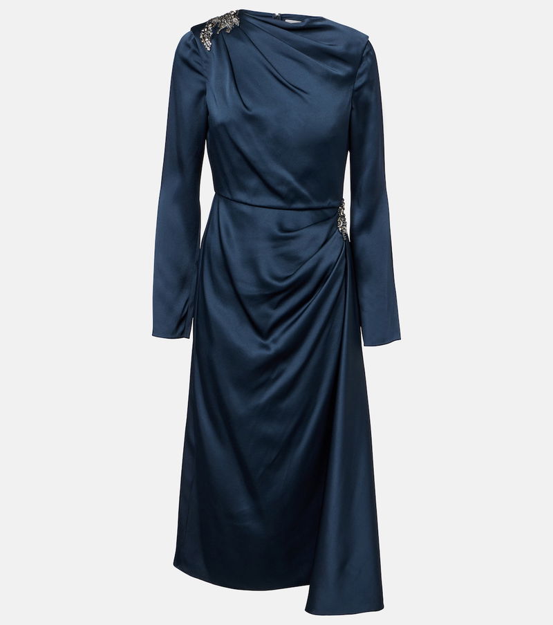 Incorporate modern romance into your edit with Erdem's whimsical and delicate designs. This cocktail dress is cut from lustrous satin cady, defined by a draped finish and crystal-embellished floral details on the shoulder and waist.