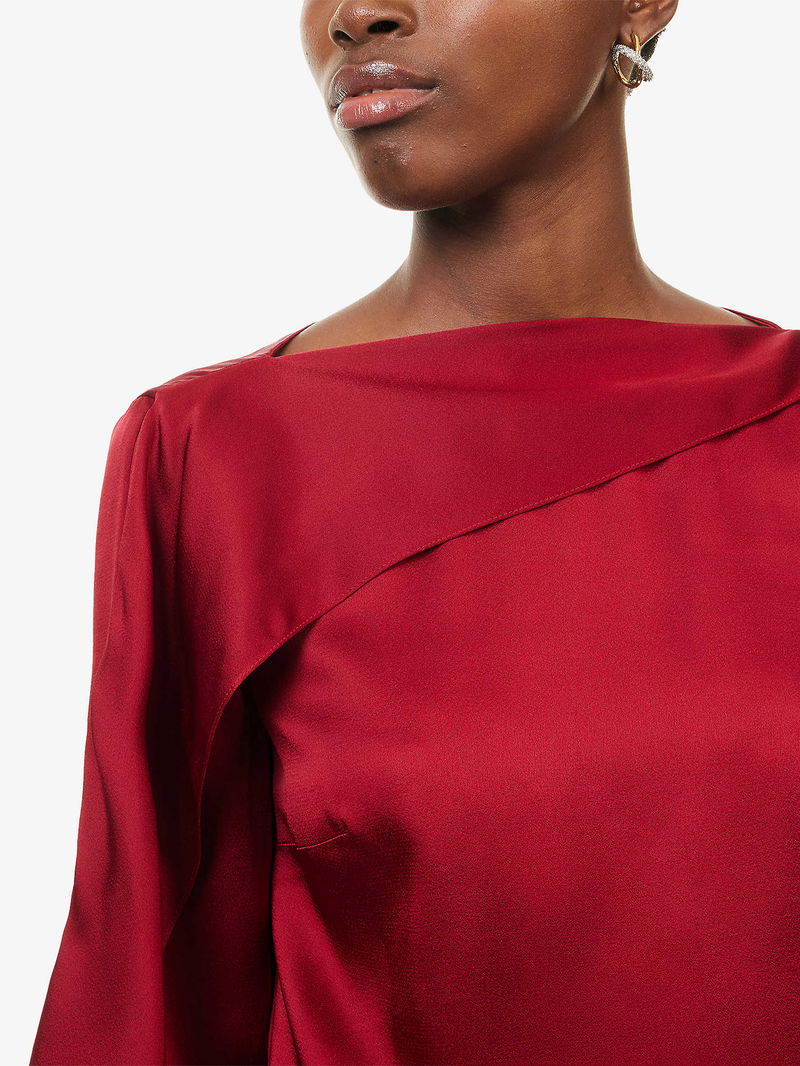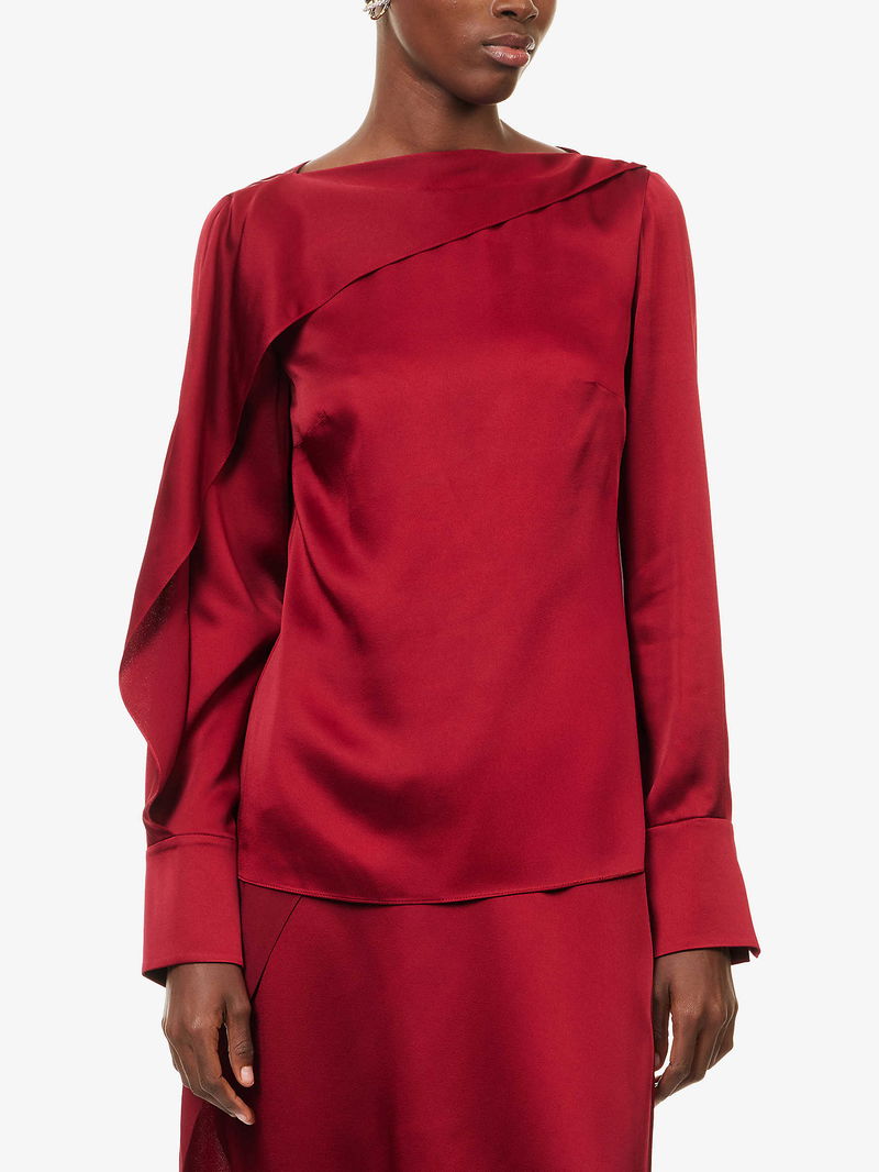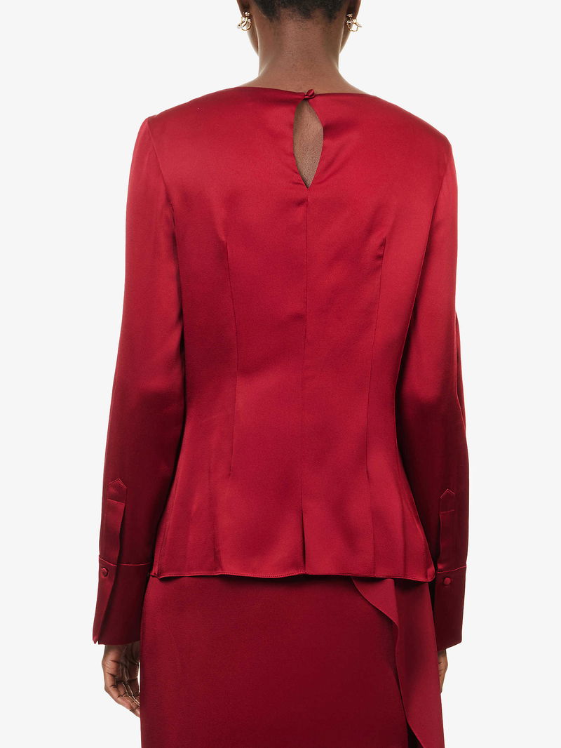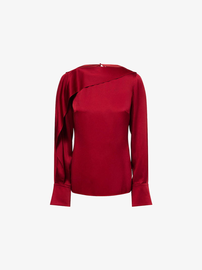 Erdem satin-cady blouse. Relaxed fit, slash neckline, long sleeves, buttoned cuffs, draped design, keyhole button at back, fully lined, satin-cady texture.
