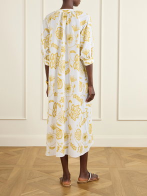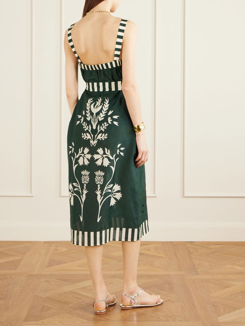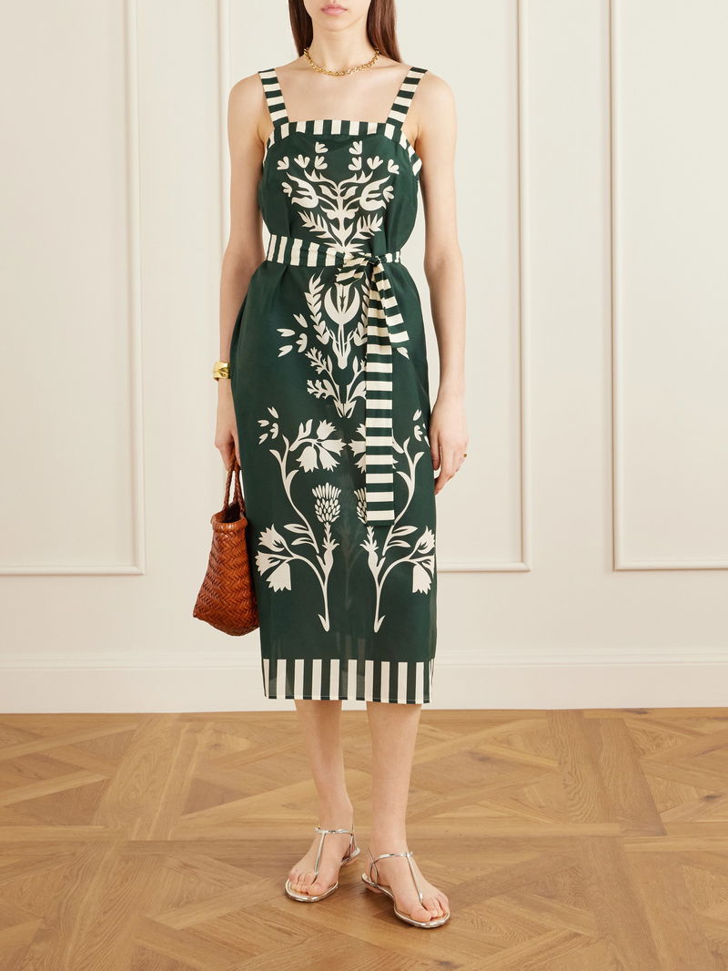 Eres’s ‘Lakshya’ dress is designed to balance shape and comfort, making it ideal for long summer days. Crafted from a lightweight cotton-silk blend, it has a relaxed fit that can be cinched with the matching fabric belt, and features a floral print with striped detailing on the hem and straps.