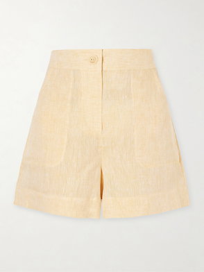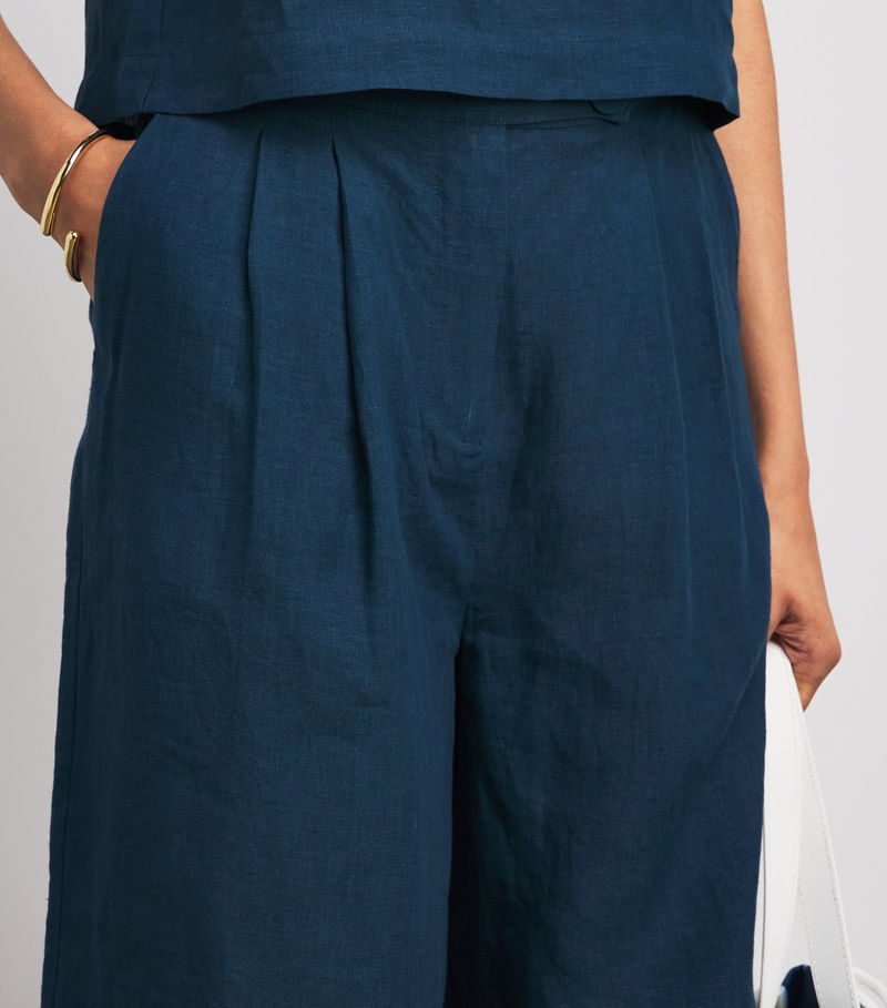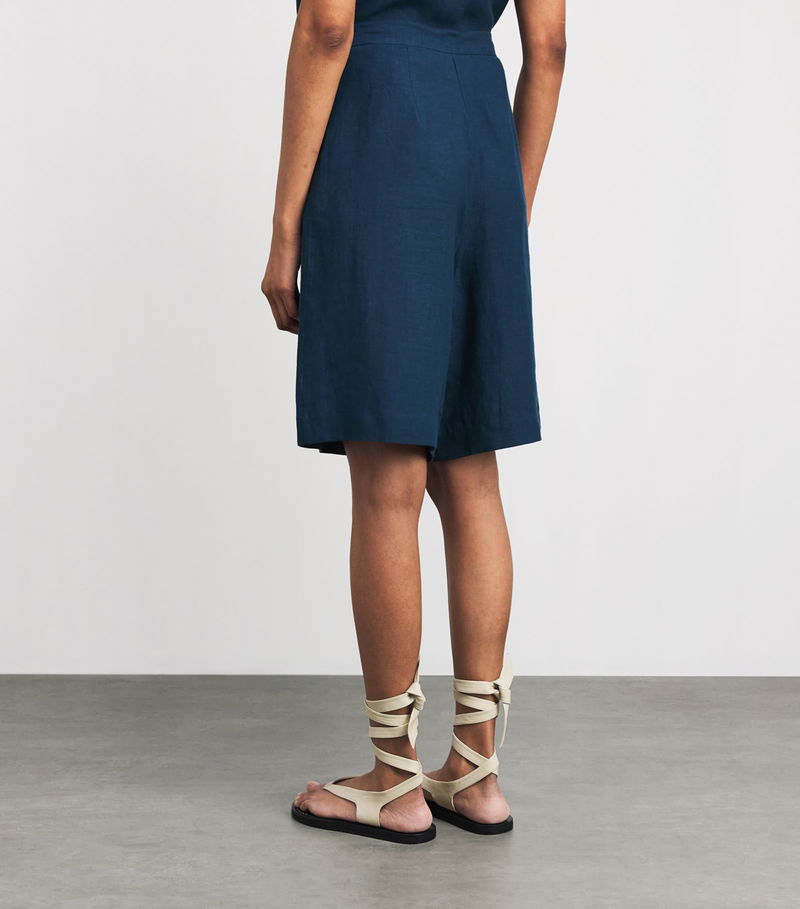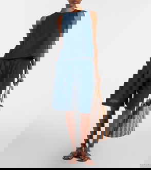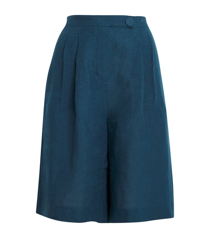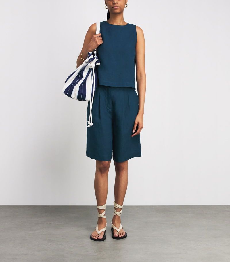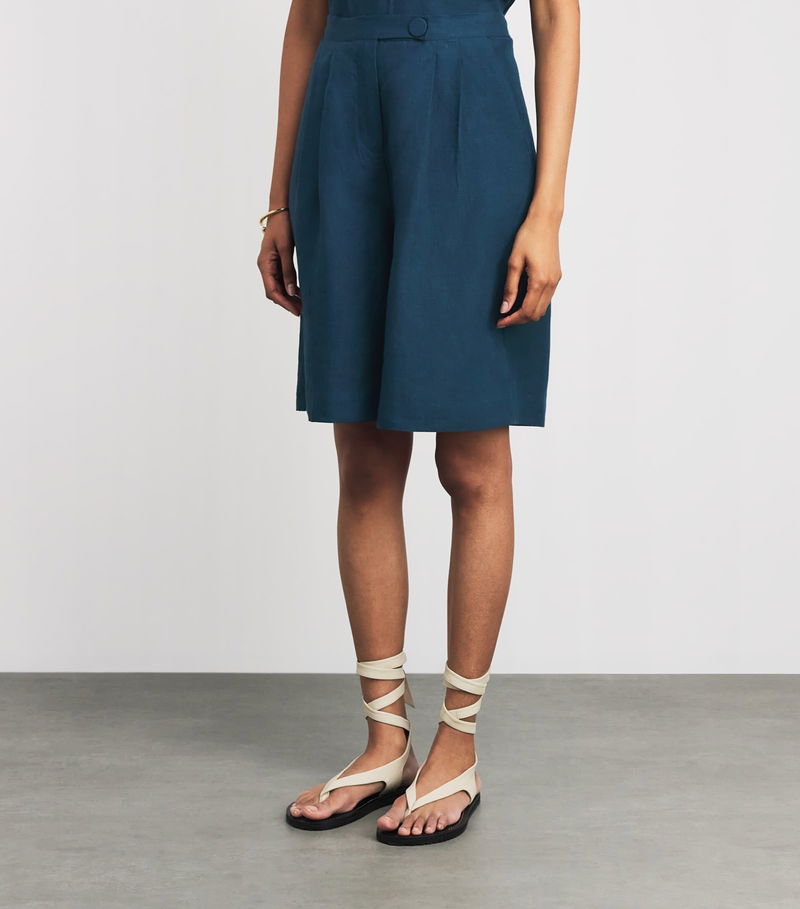 While French label Eres may be synonymous with swimwear, its commitment to comfort extends to garments, as seen with these Bermuda shorts. Crafted from pure linen, the pair’s lightweight nature exudes a relaxed air, with gathered pleats fastened by an enlarged covered button adding a bold finishing touch.