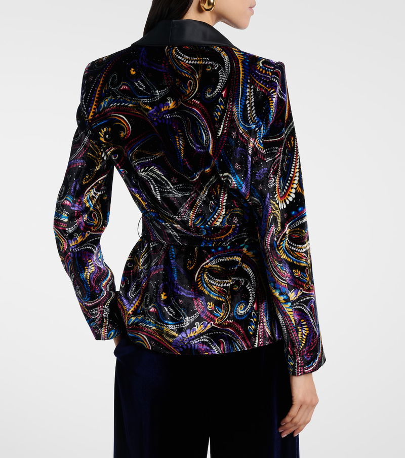 Gerolamo and Roberta Etro's love for antique prints and patterns remain a cornerstone of the Italian brand today. This blazer is crafted from lustrous velvet, decorated with a vibrant jacquard motif and fitted with a detachable belt.