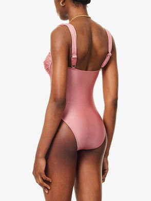 Faithfull The Brand stretch-nylon swimsuit Adjustable shoulder straps, balconette-neck, underwired cups, ruching and pleats at bust, fully lined Slips on.
