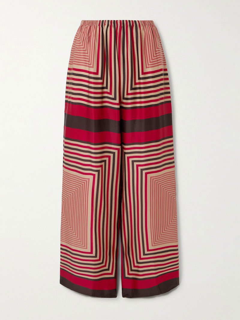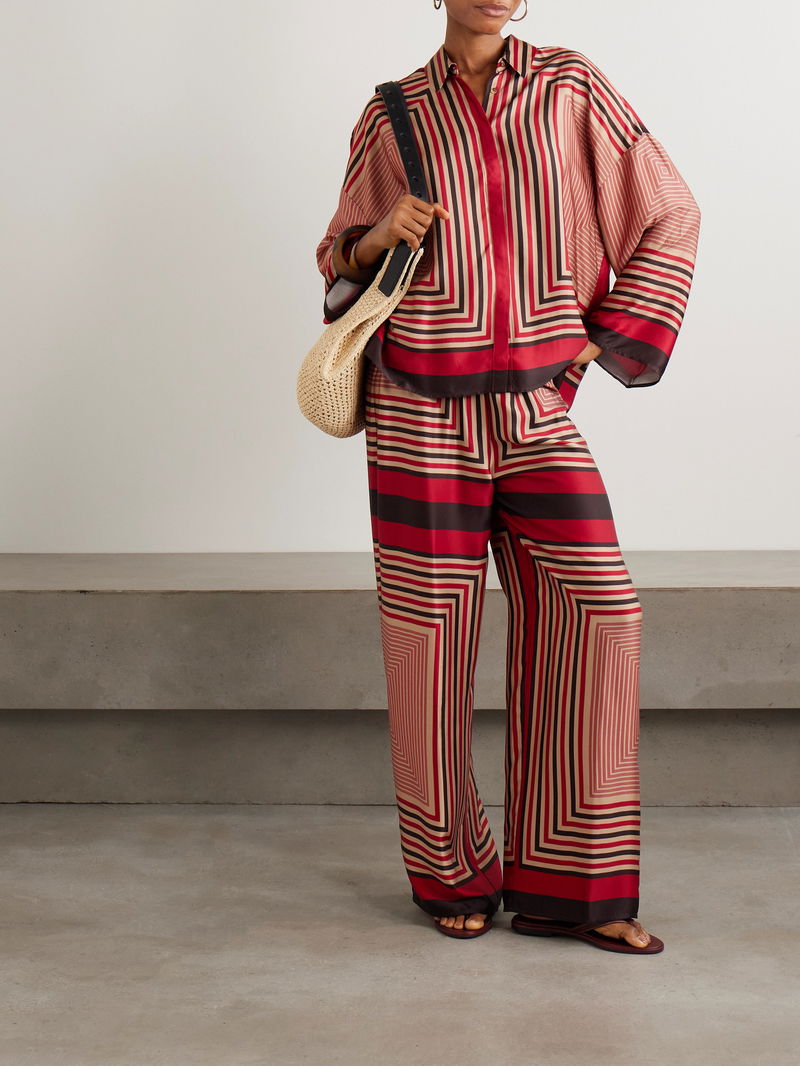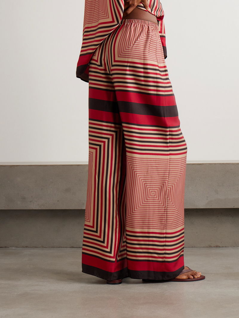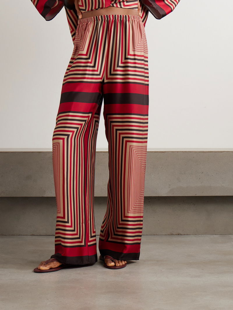 Faithfull's 'Jensen' pants are printed with geometric stripes that resemble an optical illusion. Made from fluid satin, they have a comfortable elasticated waistband and fall to wide legs with floor-skimming hems. Wear yours with the matching 'Cora' shirt in our edit.