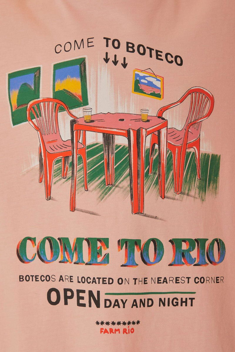Embrace the vibrant spirit of Brazil with the Pink Come To Rio Organic Cotton Relaxed T-Shirt from FARM Rio. This delightful pink tee captures the essence of Rio's lively botecos with its playful and colorful graphics, inviting you to indulge in the city's everyday celebration. Crafted with a comfortable round neckline, the relaxed silhouette offers a breezy charm perfect for any casual occasion. Made with organic cotton, it's a conscious choice that translates joy into your wardrobe.