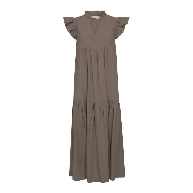 Discover the elegance of the MOS Mosh Feminine Dress, designed with small ruffle sleeves and a V-neckline for a chic daytime look. Its relaxed silhouette and wide ruffles at the bottom offer comfort and style.