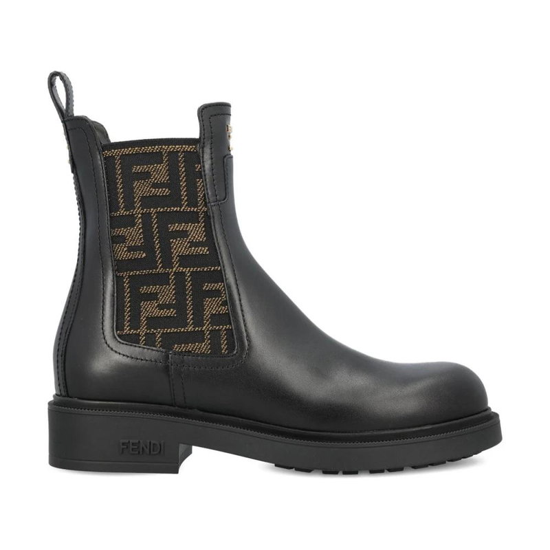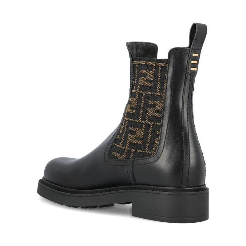 Black Leather FF Pattern Boots