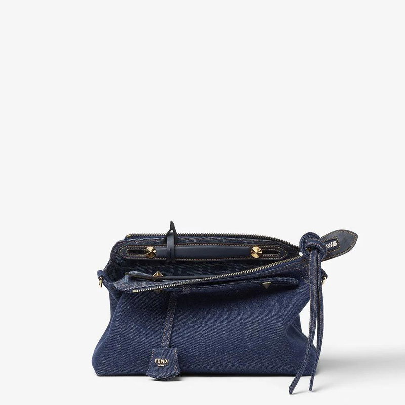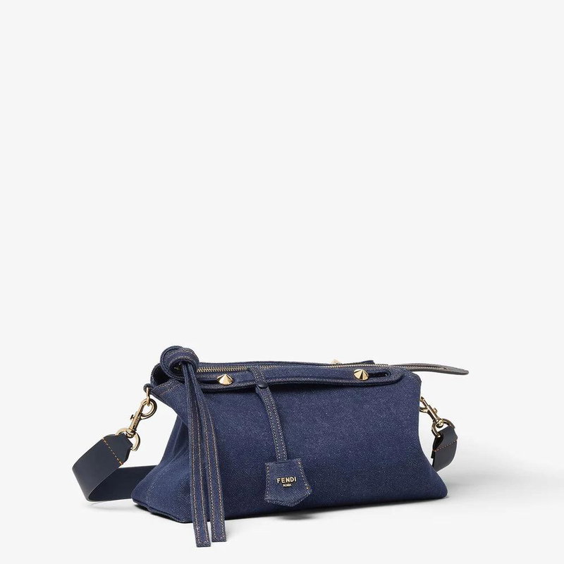 Fendi By The Way Soft Medium is a reversible denim and FF jacquard crossbody that combines a casual denim look with refined leather details for versatile everyday carry.