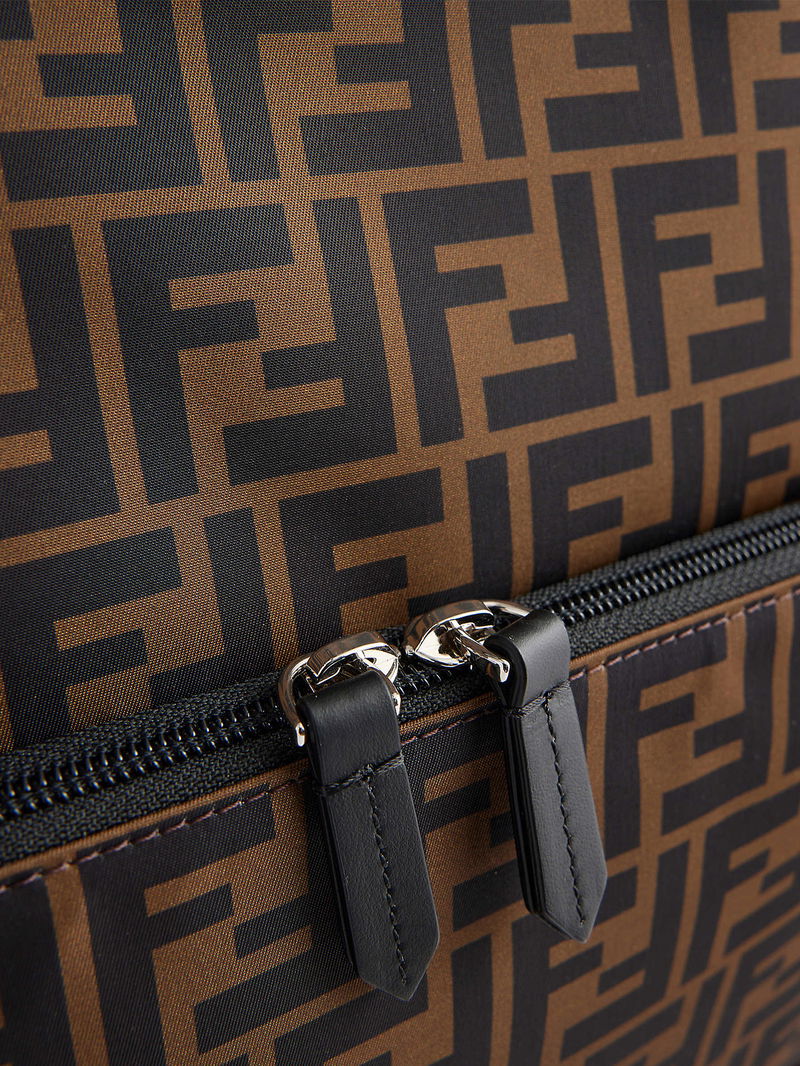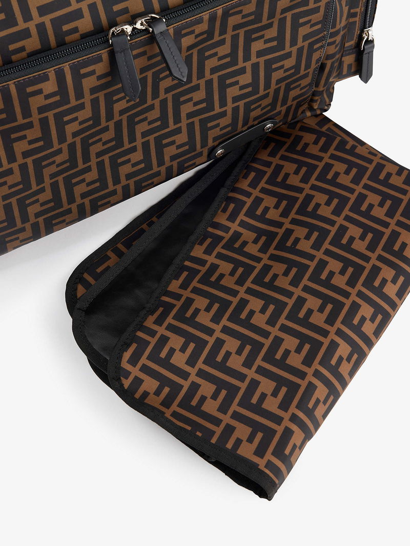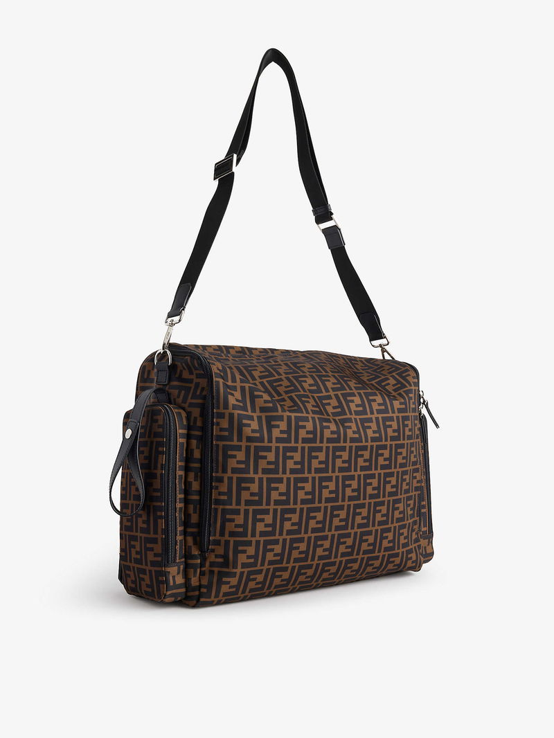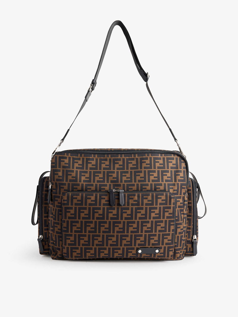 Fendi shell changing bag. Detachable cross-body strap, double-zip closure, all-over FF monogram, exterior zipped compartment at front, two zipped pockets at side, one main compartment, branded changing mat, fully lined.