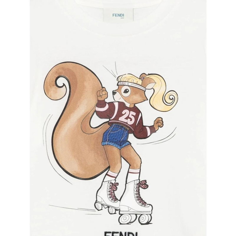 Fendi Junior T-Shirt is a cotton jersey tee that stands out for its multicolor graphic print. Designed for everyday wear, it pairs easily with casual outfits.