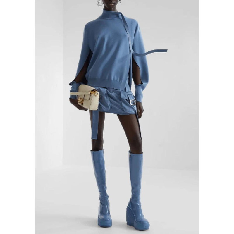Shop More: FENDI Clothing Blue Clothing Blue Skirts Blue Mini Skirts FENDI Skirts FENDI Blue Clothing