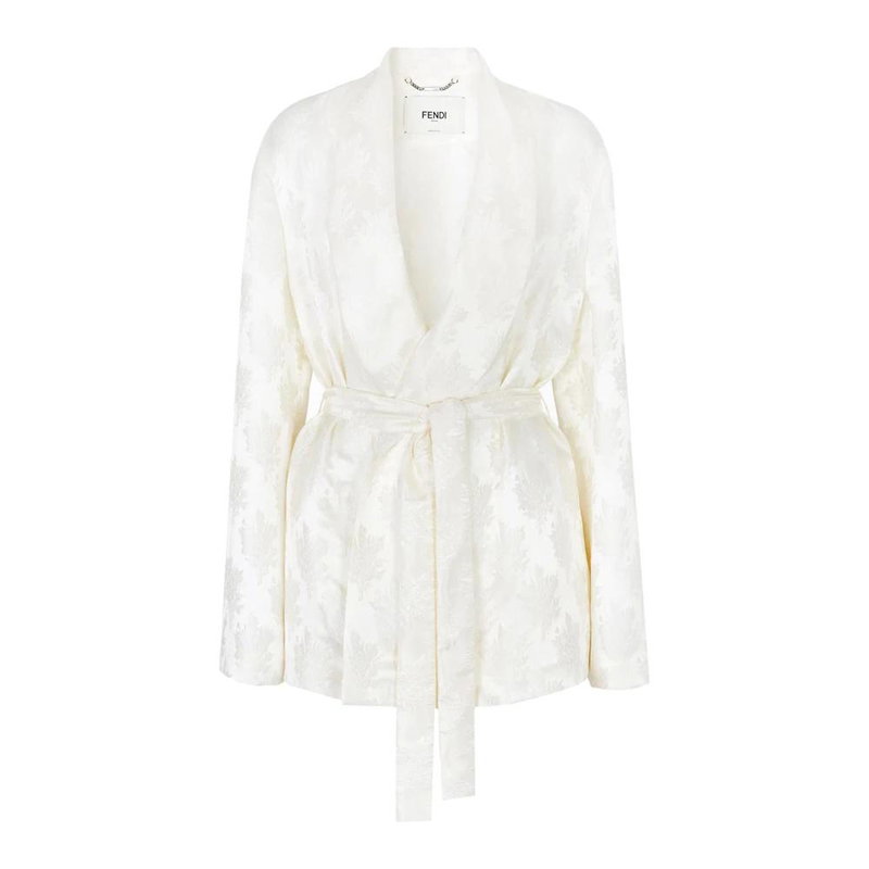Fendi Wrap Jacket features a shawl lapel and a removable waist belt for tailored layering. Crafted in Italy, it offers a refined option for polished day-to-night looks.