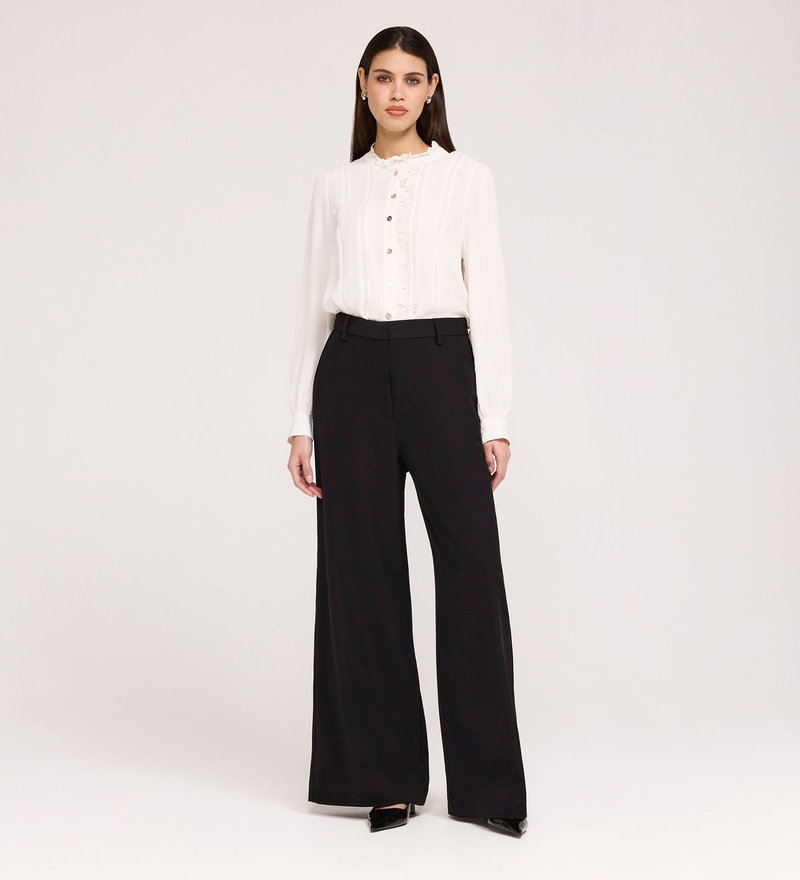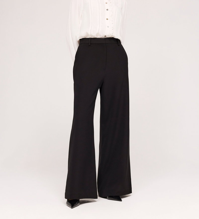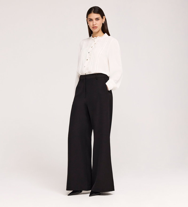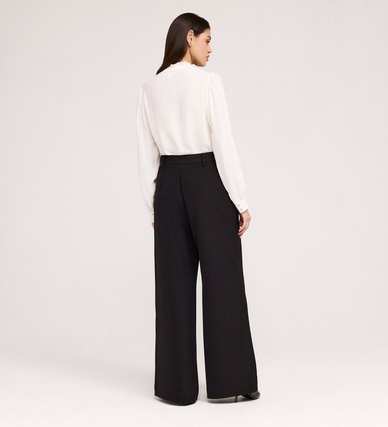 Addie Black Gaberdine Twill Wide Leg Trousers