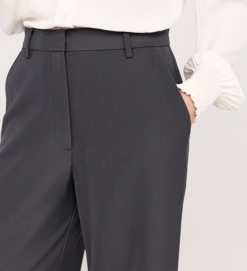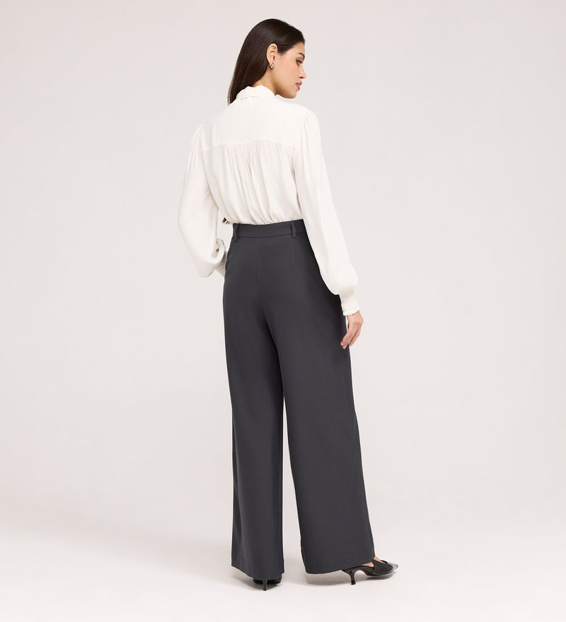 Addie Charcoal Gaberdine Twill Wide Leg Trousers