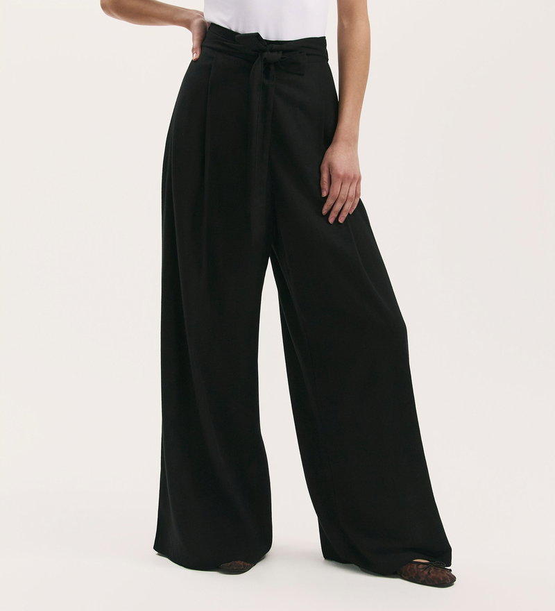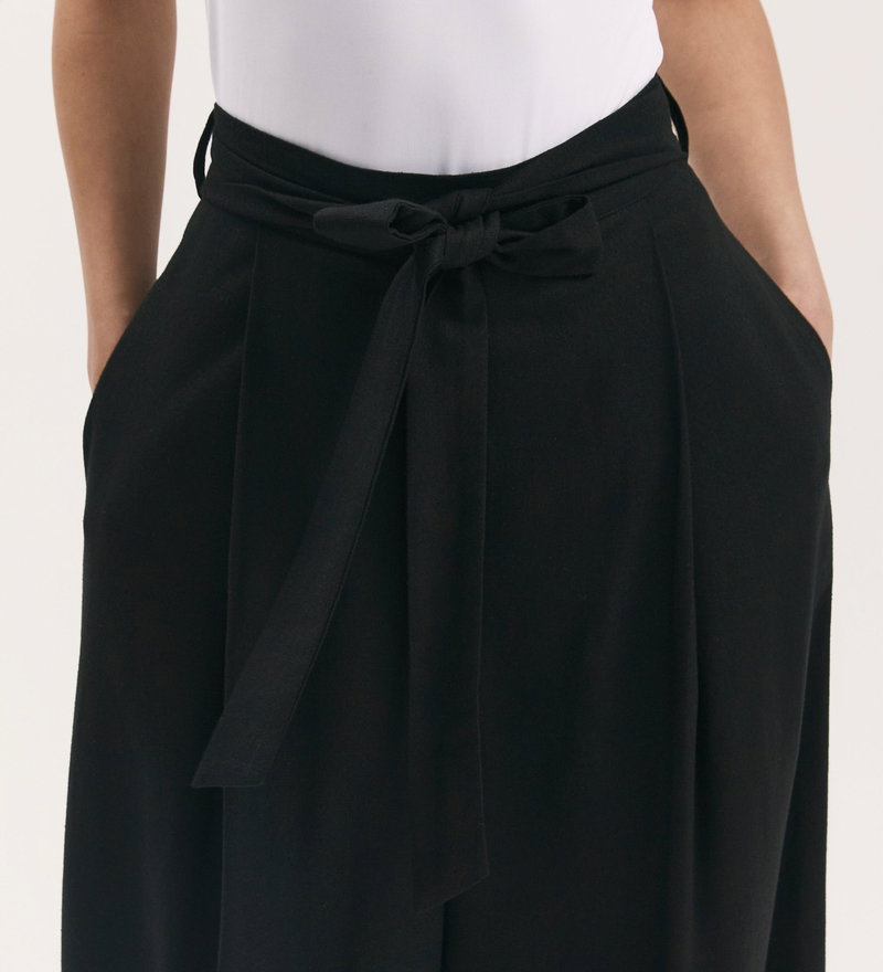 Athena Black Linen Blend Wide Leg Trousers