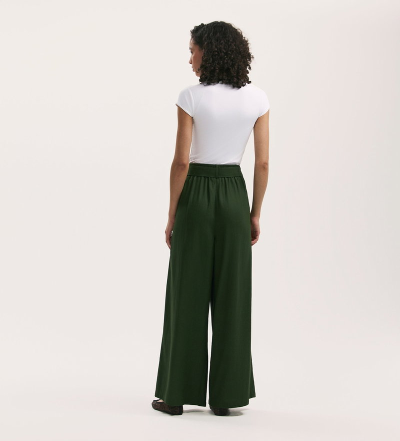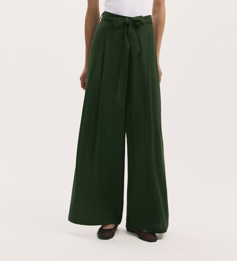Athena Dark Khaki Linen Blend Wide Leg Trousers