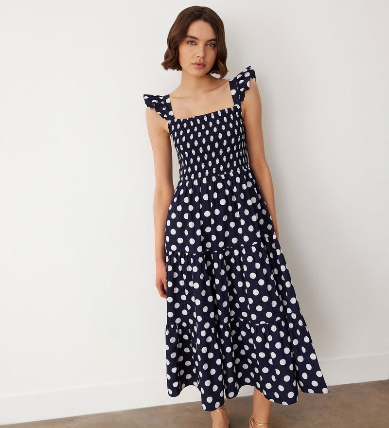 We love the frill shoulder detail on our Aurena midi sundress. Crafted from 100 per cent cotton, Aurena also features a square neckline, tiered skirt and a shirred bodice.