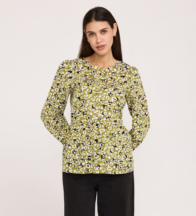 Bel Green Leopard Cotton Blouse