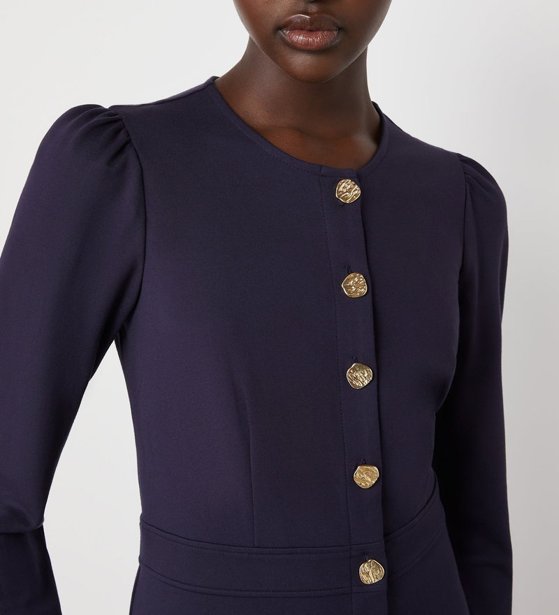 Meet Blake, a knee-length button through dress crafted from Ponte Jersey. With eye-catching front buttons, a round neckline and full length straight sleeves, Blake is an elegant wardrobe addition.