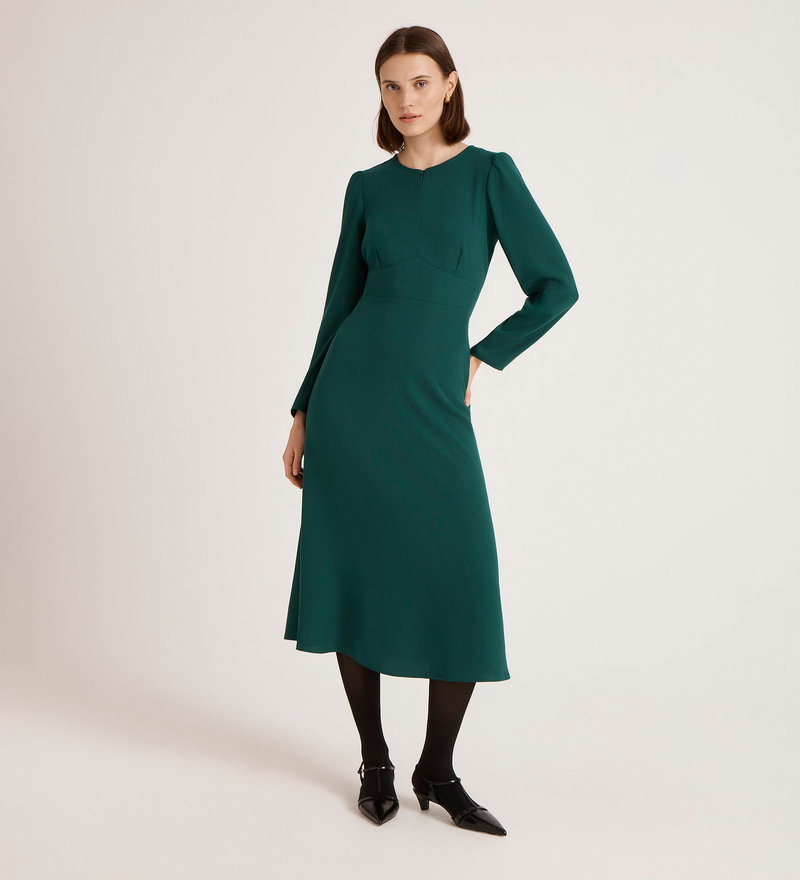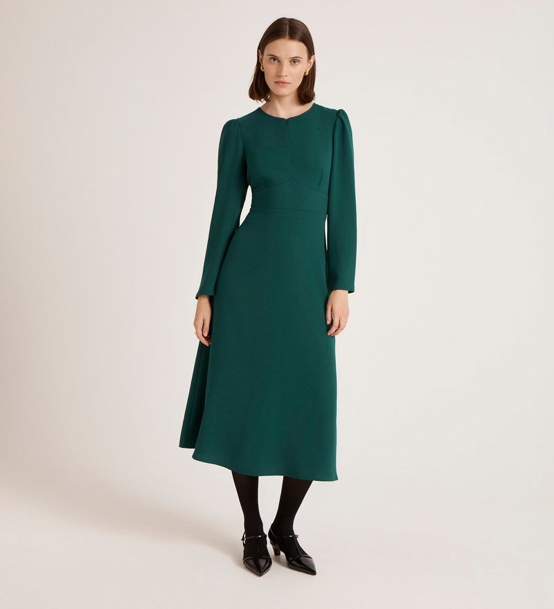 Caley Bottle Green Crepe Midi Dress