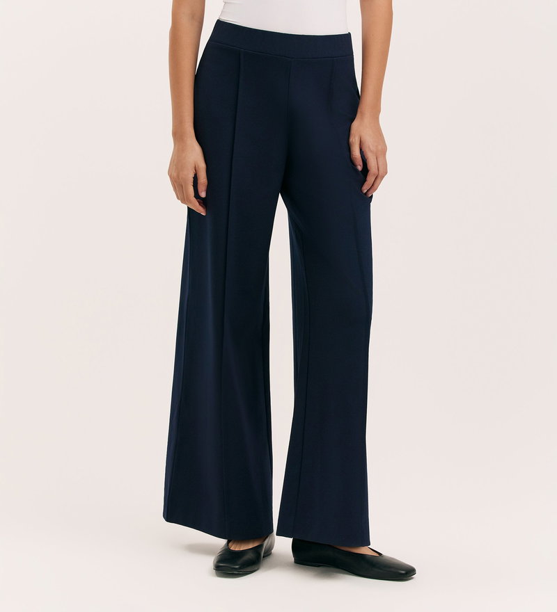Caryl Navy Ponte Jersey Wide Leg Trouser