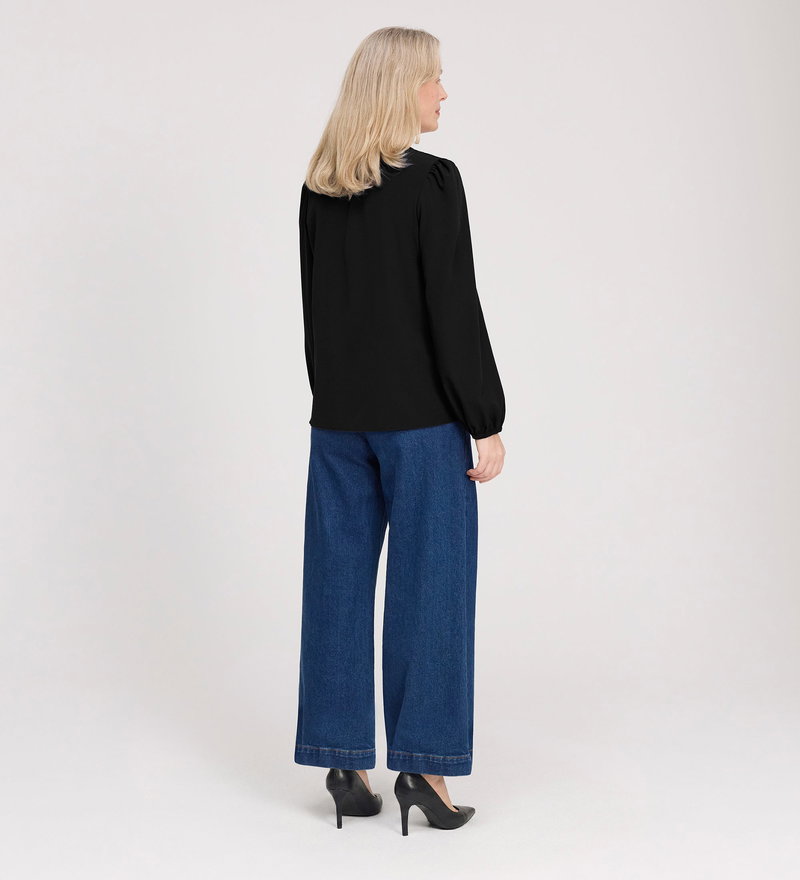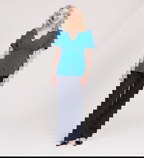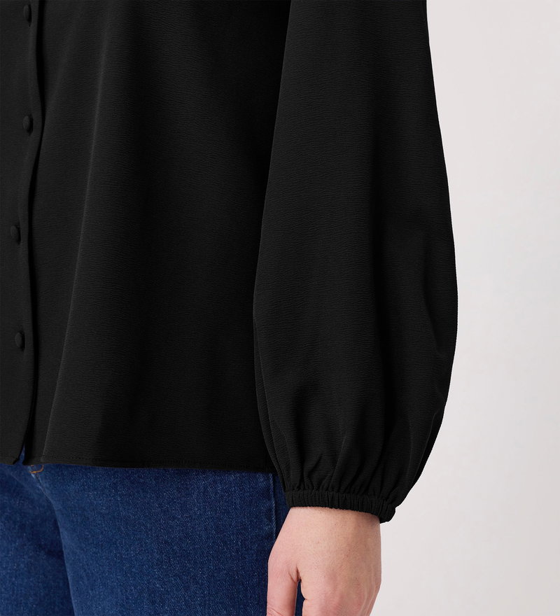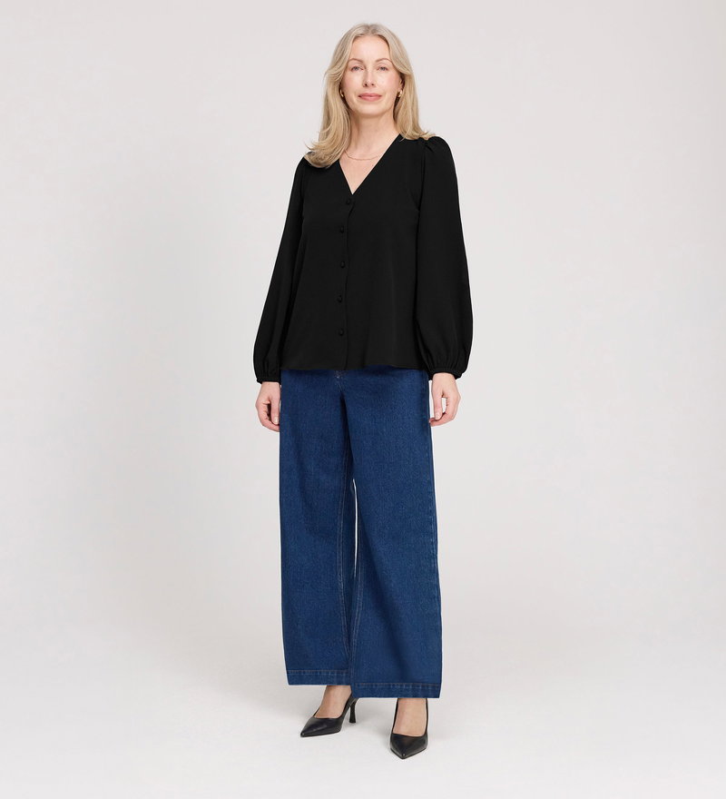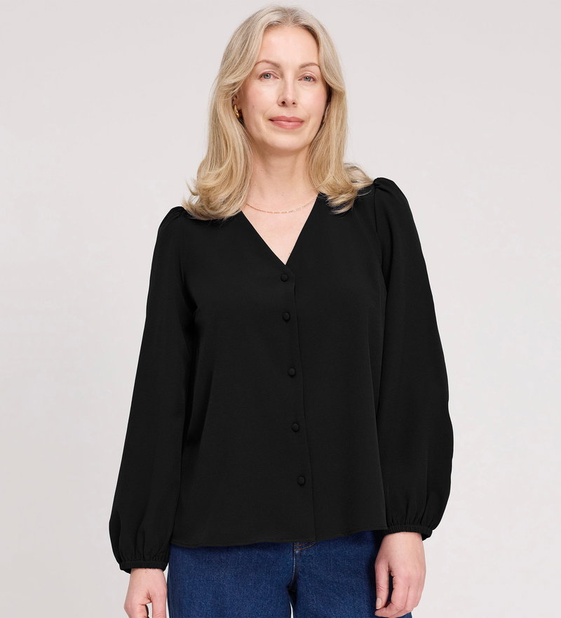 Elvora Black Button Up V-neck Top