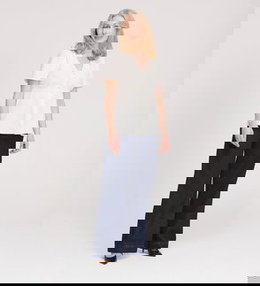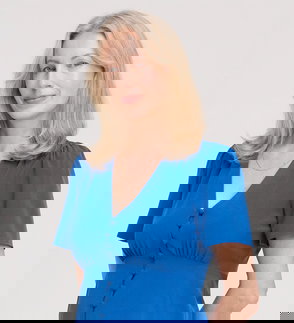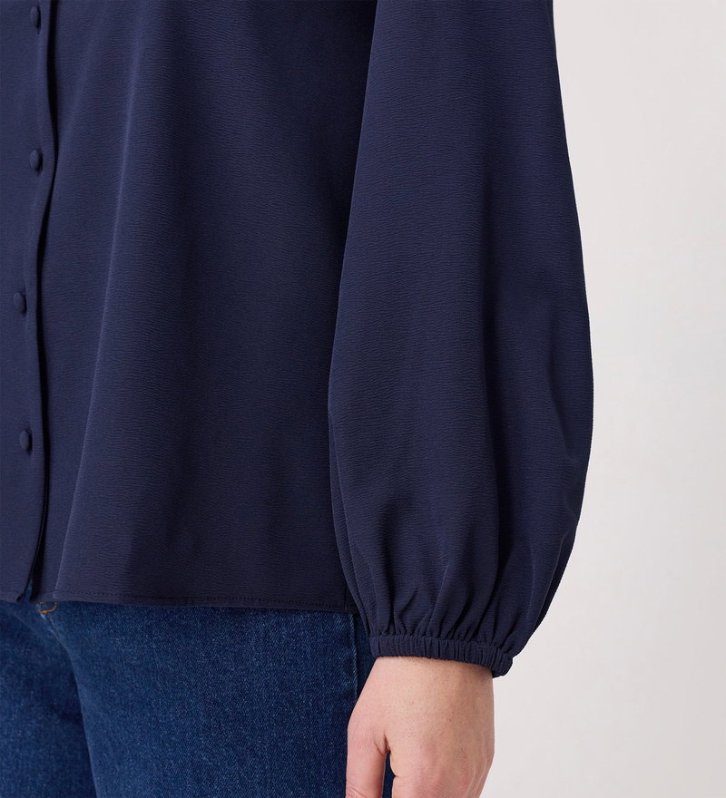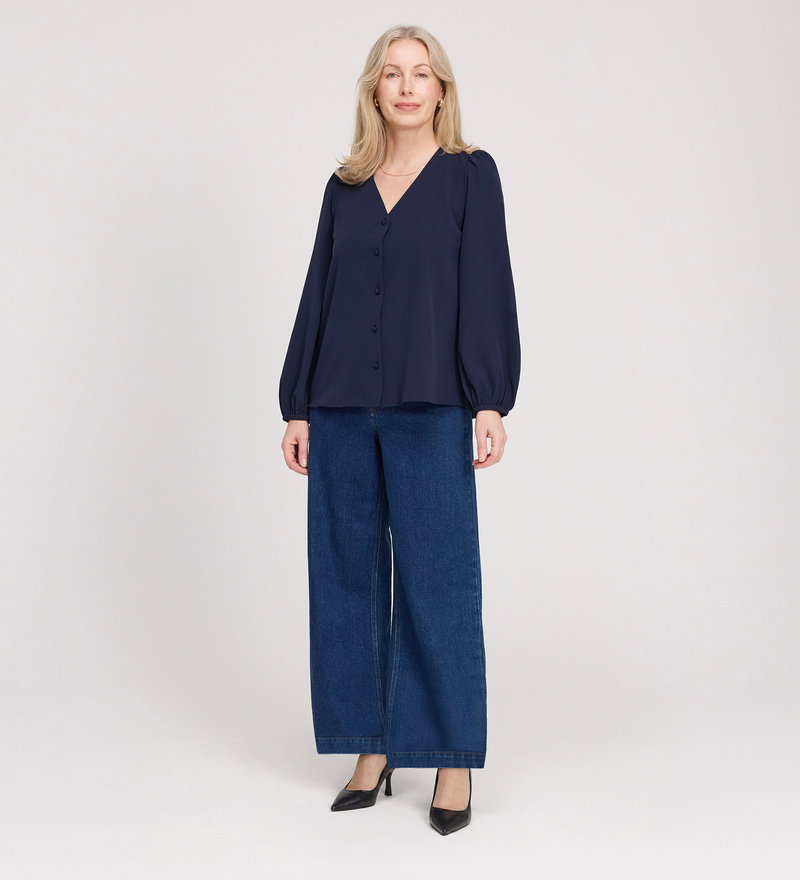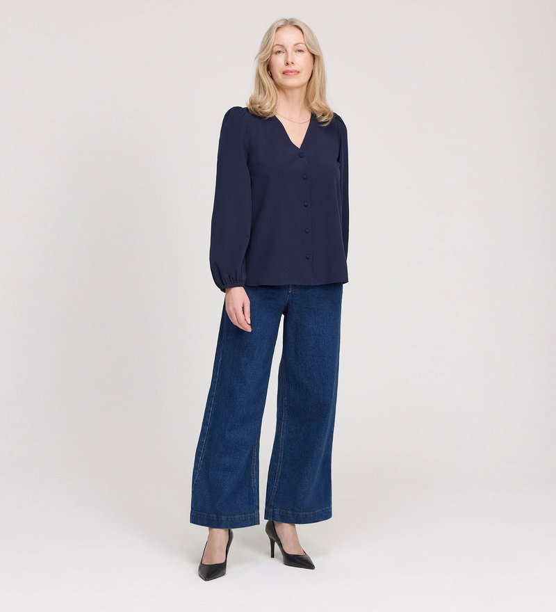 Elvora Navy Button Up V-neck Top