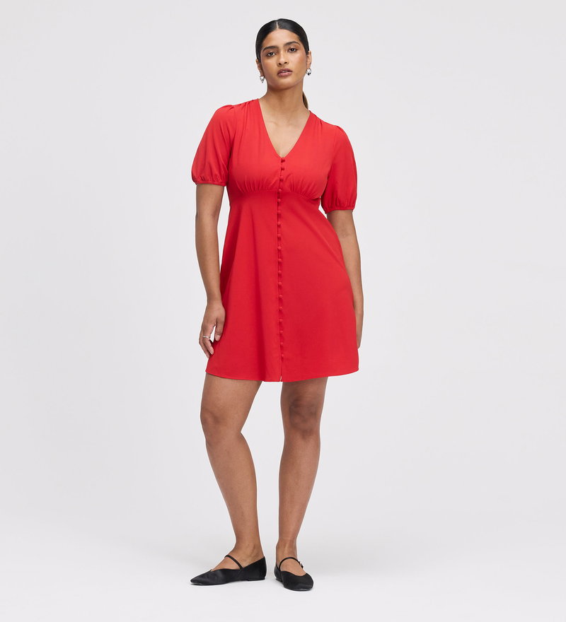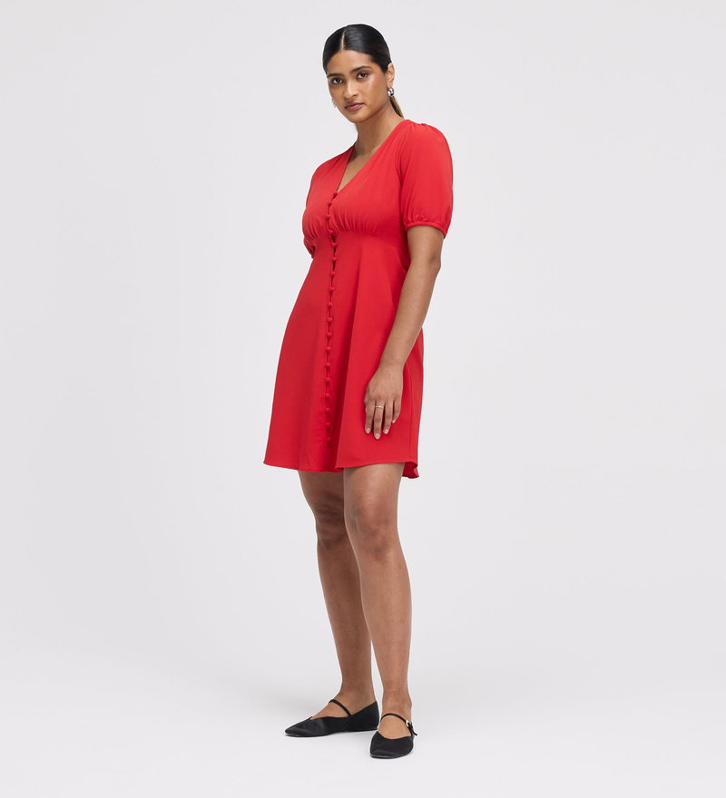 Ensley Red Button Through Short Dress