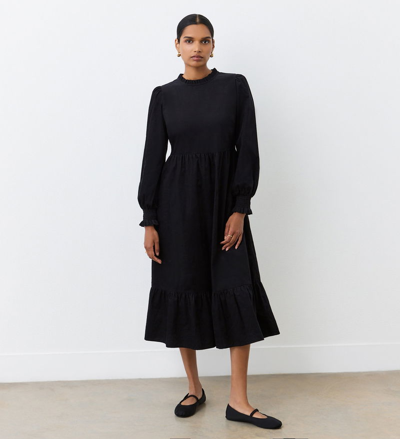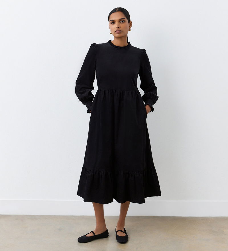 Providing coverage in the chilly temperatures, Esme is crafted from a corduroy fabric and has a tiered hemline. We love the neck frill detail and the shirred cuffs. With long sleeves, Esme also features functional pockets.