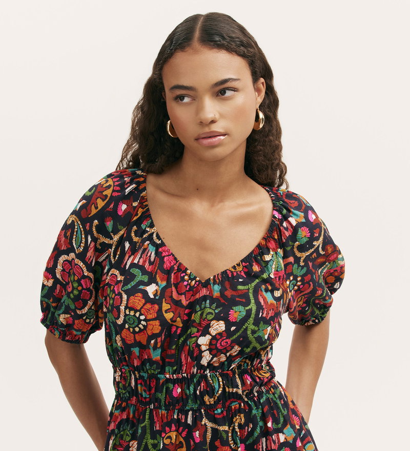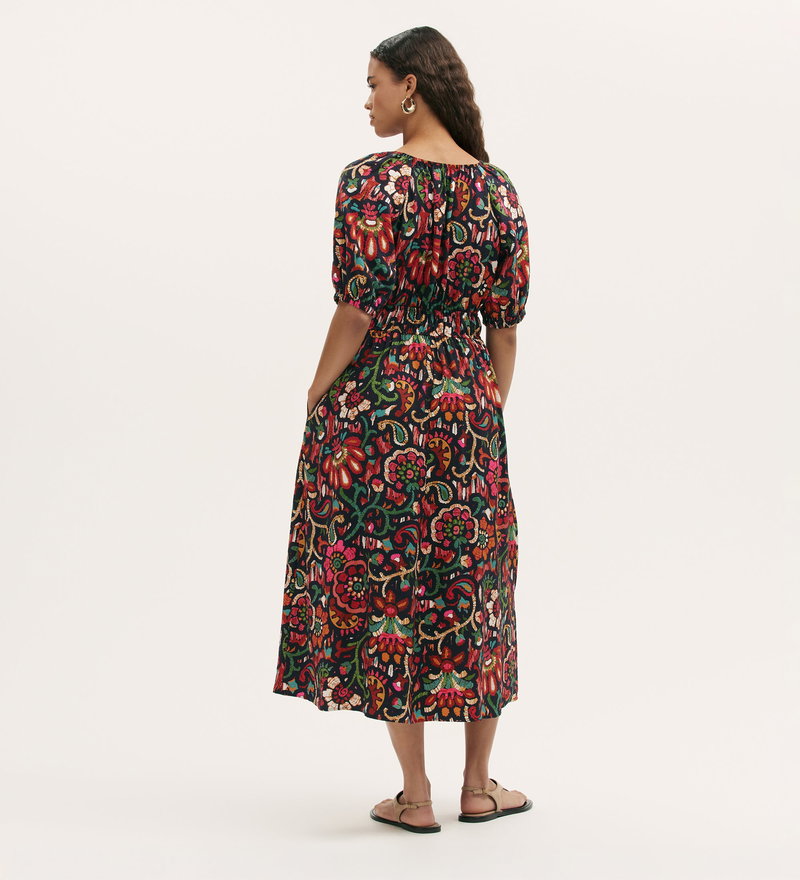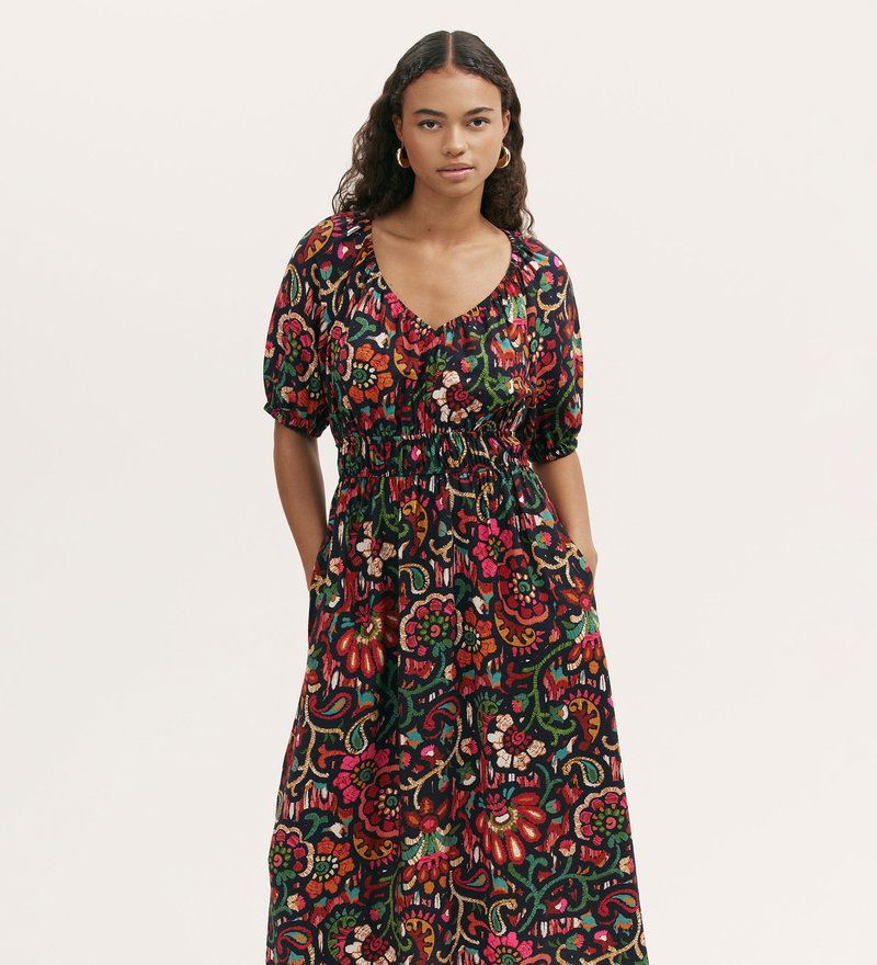 Estee Black Floral Midi Smock Dress
