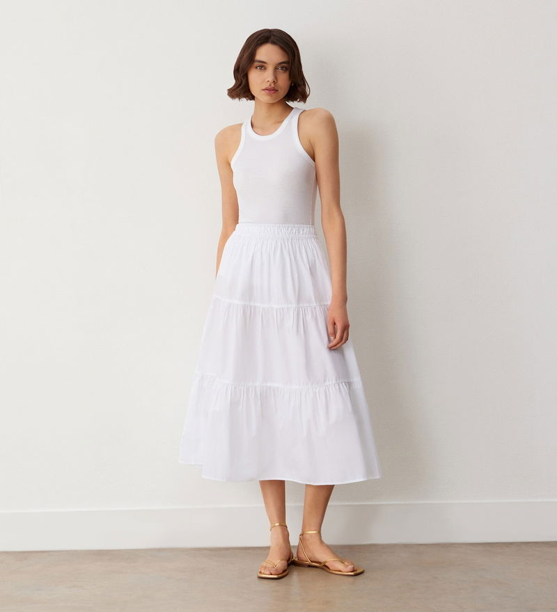With a comfortable elasticated waistband, Harleen is a 100 per cent cotton tiered midi skirt that's perfect for every wardrobe.
