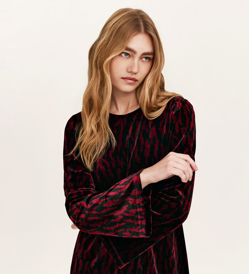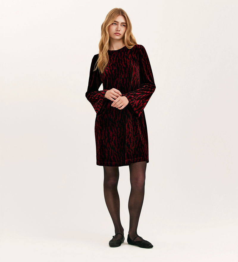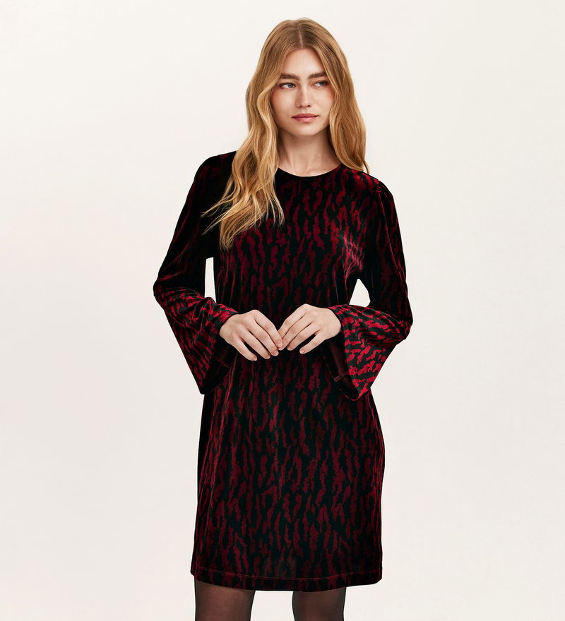 Hattie is a relaxed-fit mini dress that combines ease with a touch of elegance. Designed with a classic round neckline and rear keyhole fastening, she also features long sleeves for a balanced, flattering shape. Crafted from plush jersey velvet that catches the light with a soft sheen, Hattie is the perfect wardrobe addition for effortless party dressing.