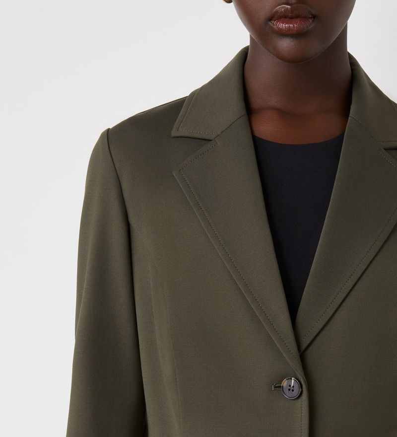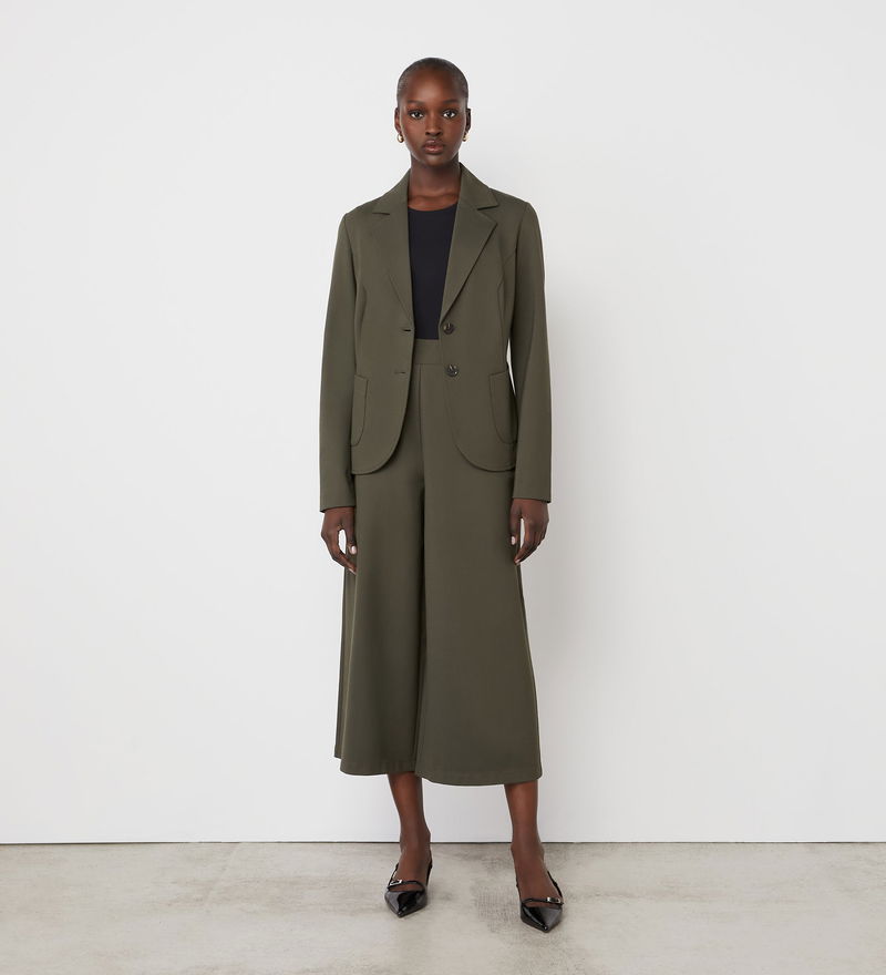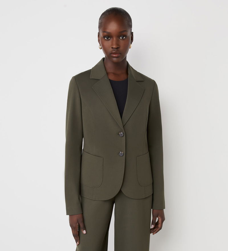 Crafted from Ponte jersey, Jules is a khaki single-breasted blazer with two button fastenings and front patch pockets. She also features princess seams for a flattering fit.