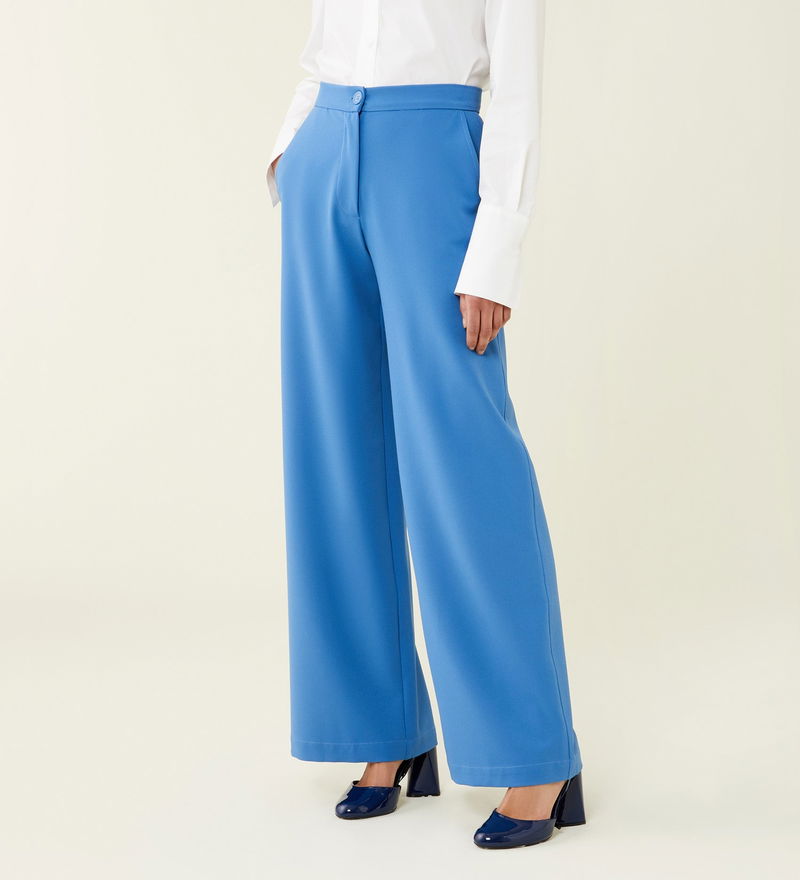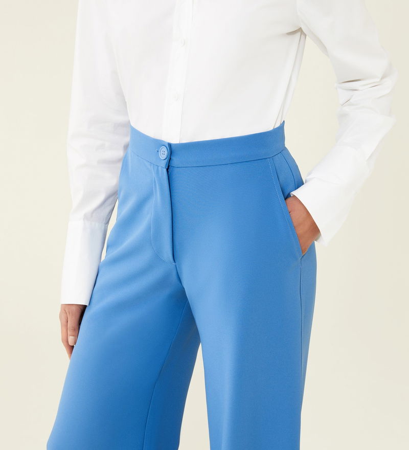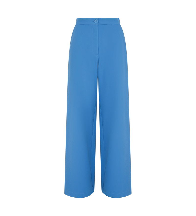 For flattering trousers that will take you from day to night with ease, look no further than our Kaden trousers. Made from a stretch fabric in blue that's soft against the skin, the trousers are on trend thanks to their wide-leg style. Sitting high on the waist for a comfortable fit, thy also have functional side pockets. Tuck in a plain white tee for casual days or pair with a satin camisole for dressier occasions.