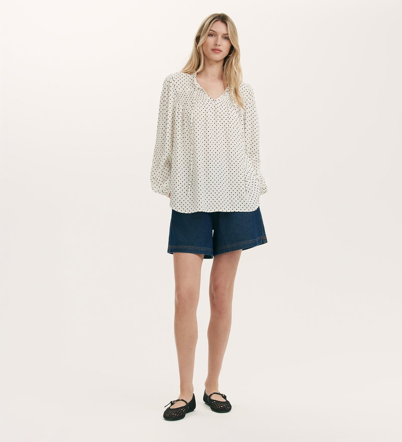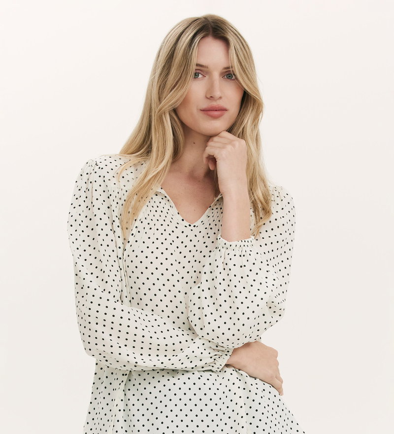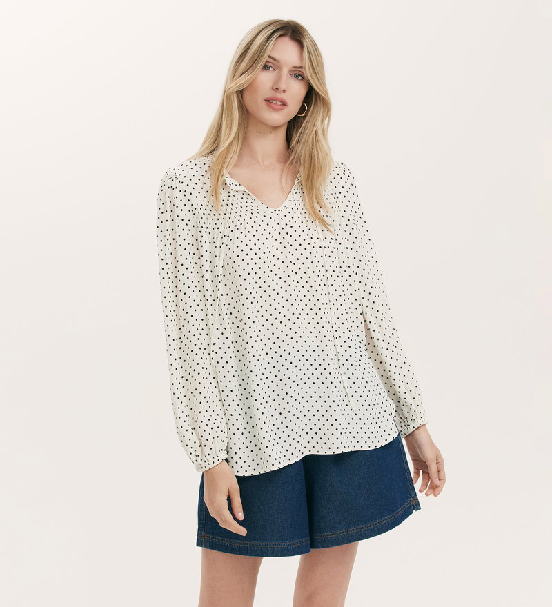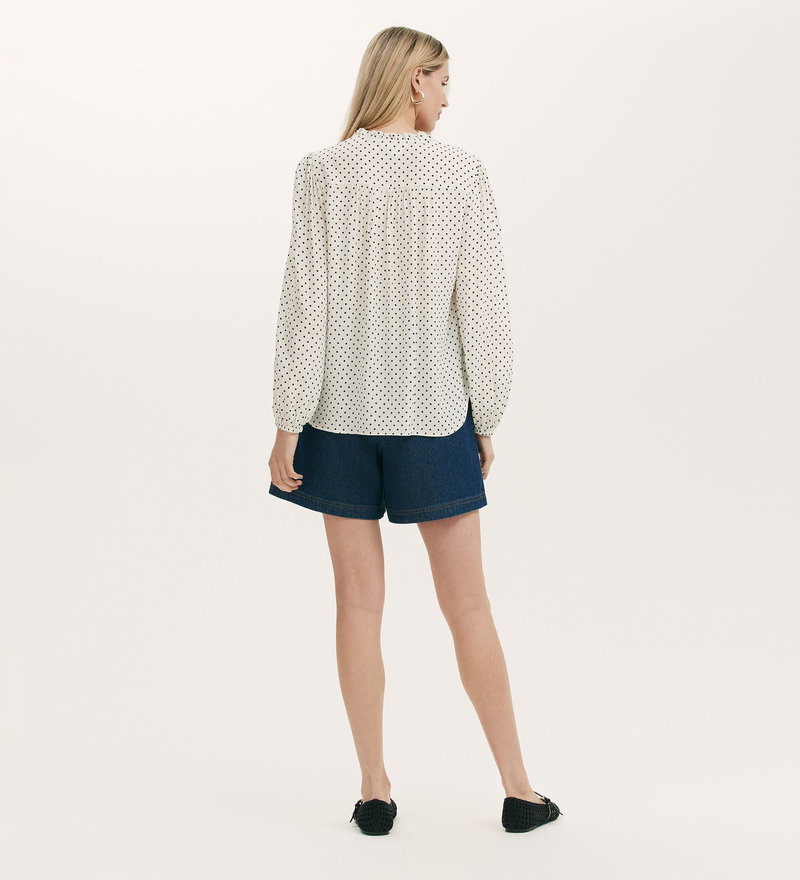Kiya Ivory Polka Dot Tie Neck Blouse