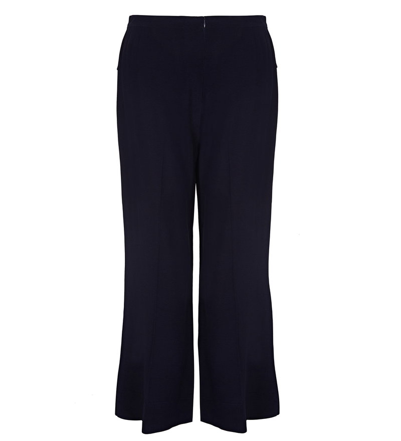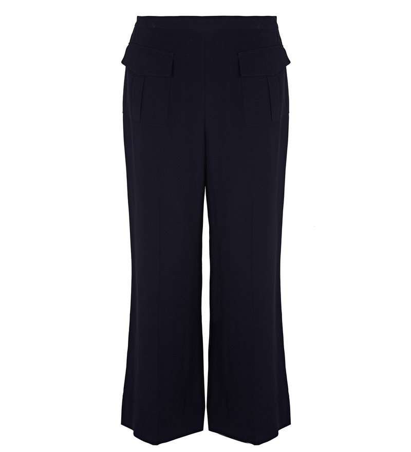 Cropped length kick flare trousers. Patch pockets with pleat.